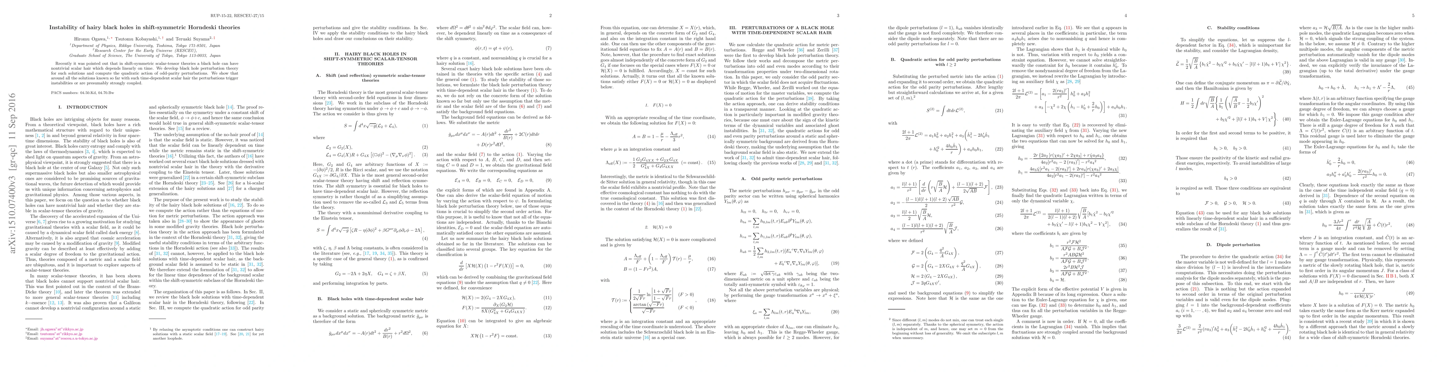 The paper investigates the instability of hairy black holes in shift-symmetric Horndeski theories, demonstrating that perturbations trigger instabilities or are strongly coupled around known solutions with time-dependent scalar hair.