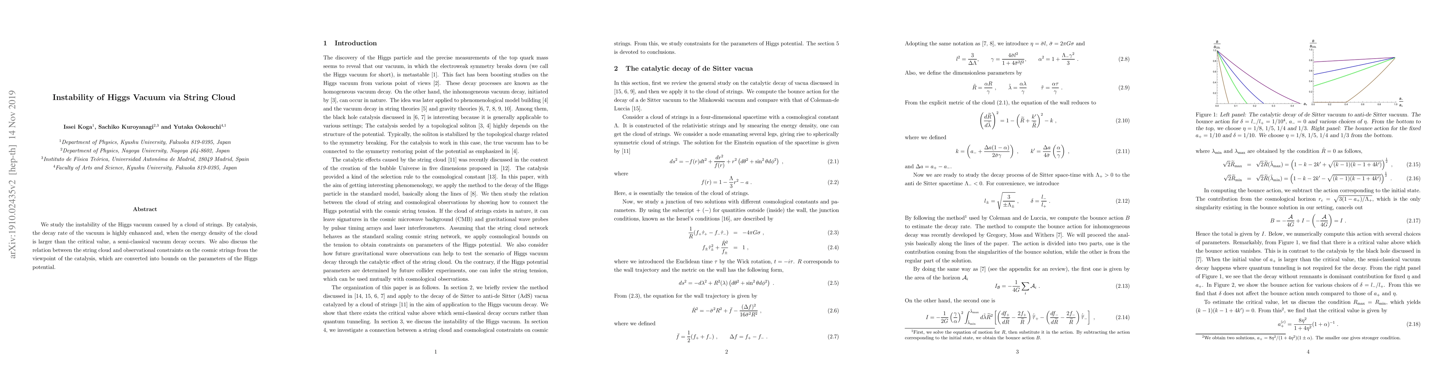 Research finds that a cloud of strings can destabilize the Higgs vacuum, causing it to decay faster, with implications for understanding cosmic strings and observational constraints.