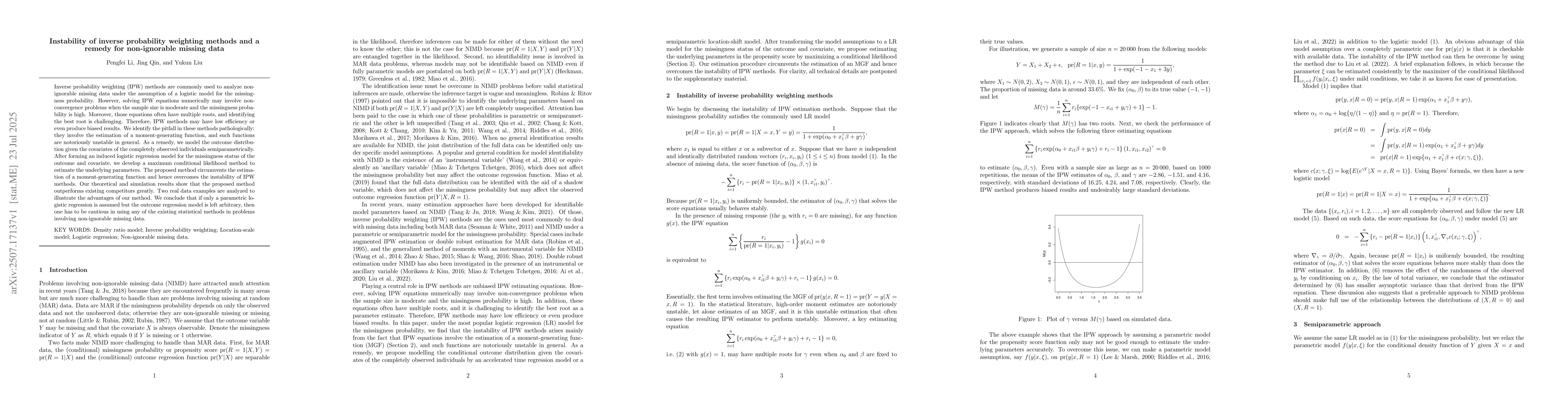 Inverse probability weighting (IPW) methods are commonly used to analyze non-ignorable missing data under the assumption of a logistic model for the missingness probability. However, solving IPW equations numerically may involve non-convergence problems when the sample size is moderate and the missingness probability is high. Moreover, those equations often have multiple roots, and identifying the best root is challenging. Therefore, IPW methods may have low efficiency or even produce biased results. We identify the pitfall in these methods pathologically: they involve the estimation of a moment-generating function, and such functions are notoriously unstable in general. As a remedy, we model the outcome distribution given the covariates of the completely observed individuals semiparametrically. After forming an induced logistic regression model for the missingness status of the outcome and covariate, we develop a maximum conditional likelihood method to estimate the underlying parameters. The proposed method circumvents the estimation of a moment-generating function and hence overcomes the instability of IPW methods. Our theoretical and simulation results show that the proposed method outperforms existing competitors greatly. Two real data examples are analyzed to illustrate the advantages of our method. We conclude that if only a parametric logistic regression is assumed but the outcome regression model is left arbitrary, then one has to be cautious in using any of the existing statistical methods in problems involving non-ignorable missing data.