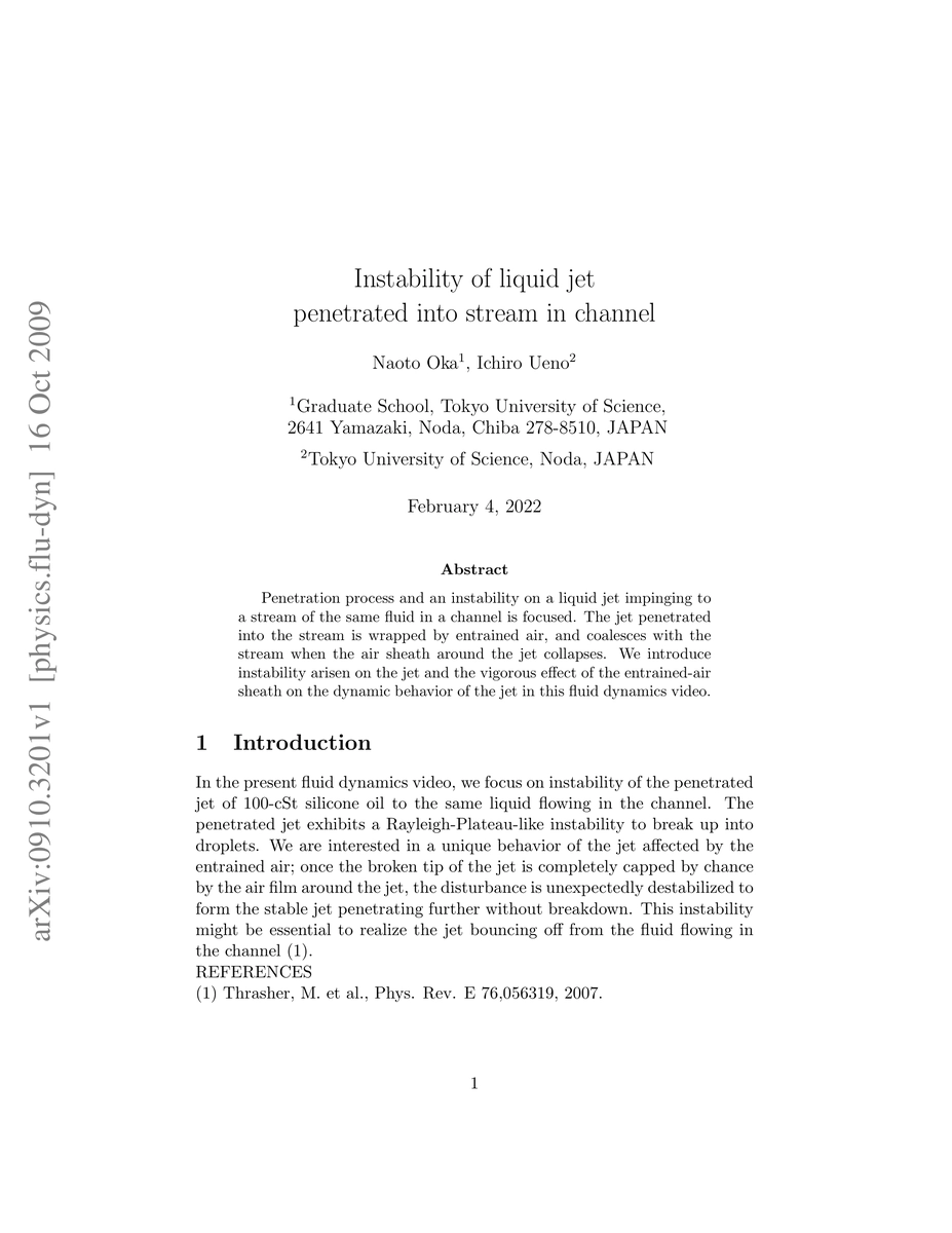 This study investigates the penetration and instability of a liquid jet into a stream of the same fluid within a channel, highlighting the role of entrained air that wraps around the jet and influences its dynamic behavior until the air sheath collapses, merging the jet with the stream. The research focuses on the instability mechanisms and the air sheath's impact on the jet's dynamics.