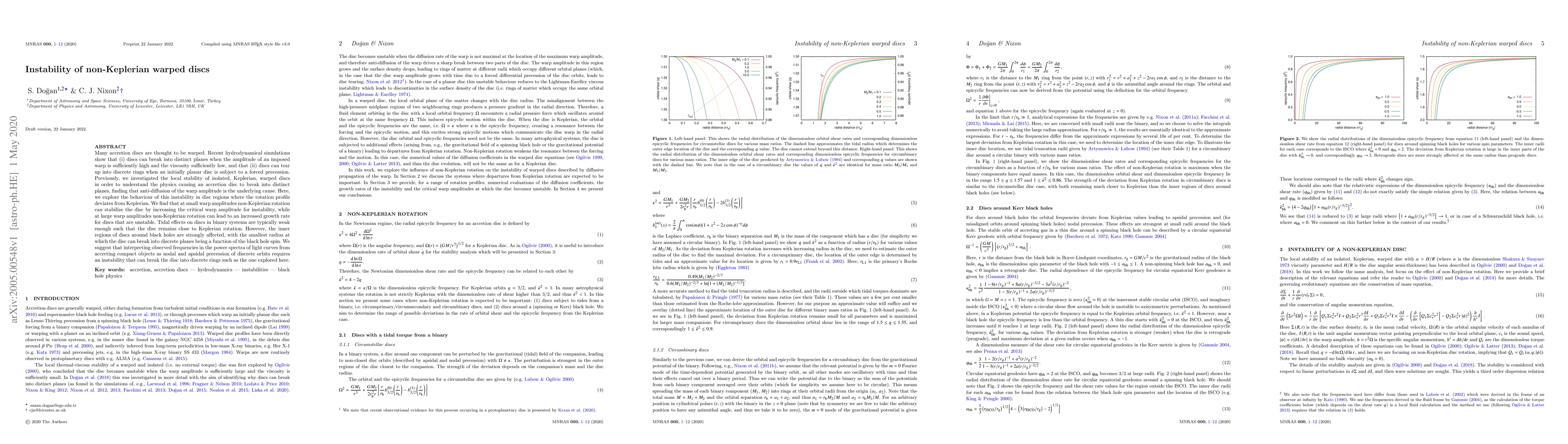 This paper investigates the instability of warped accretion discs that deviate from Keplerian rotation, revealing that non-Keplerian rotation can either stabilize or exacerbate the instability depending on the warp amplitude. It suggests that inner regions of discs around black holes, influenced by strong tidal effects, may break into discrete rings, impacting the interpretation of light curve frequencies.