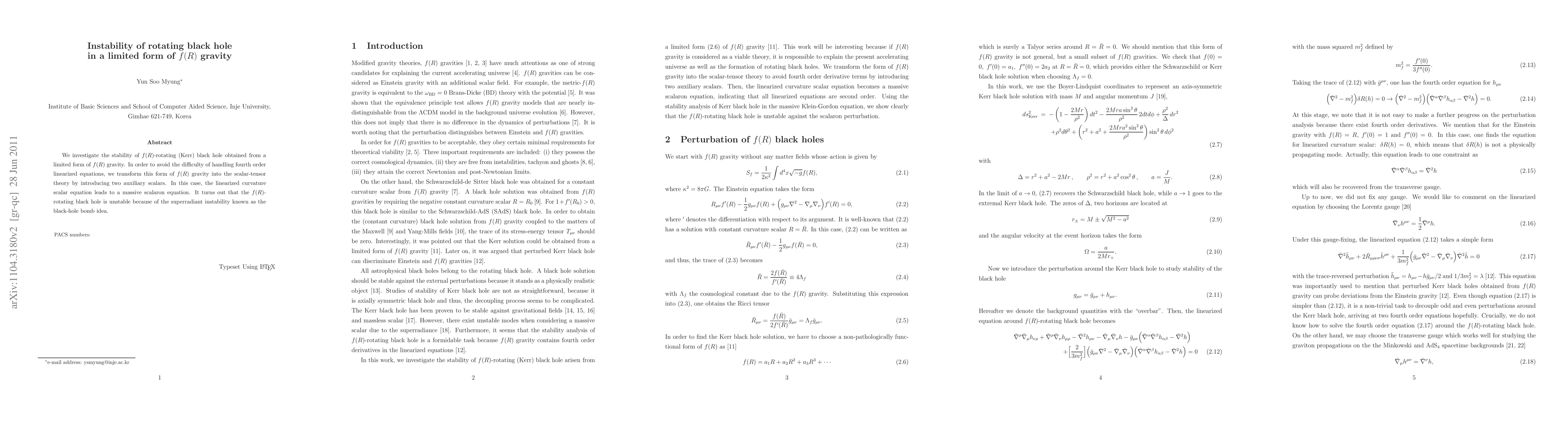 The research used a combination of theoretical models and numerical simulations to investigate the stability of rotating black holes in the context of f(R) theories.