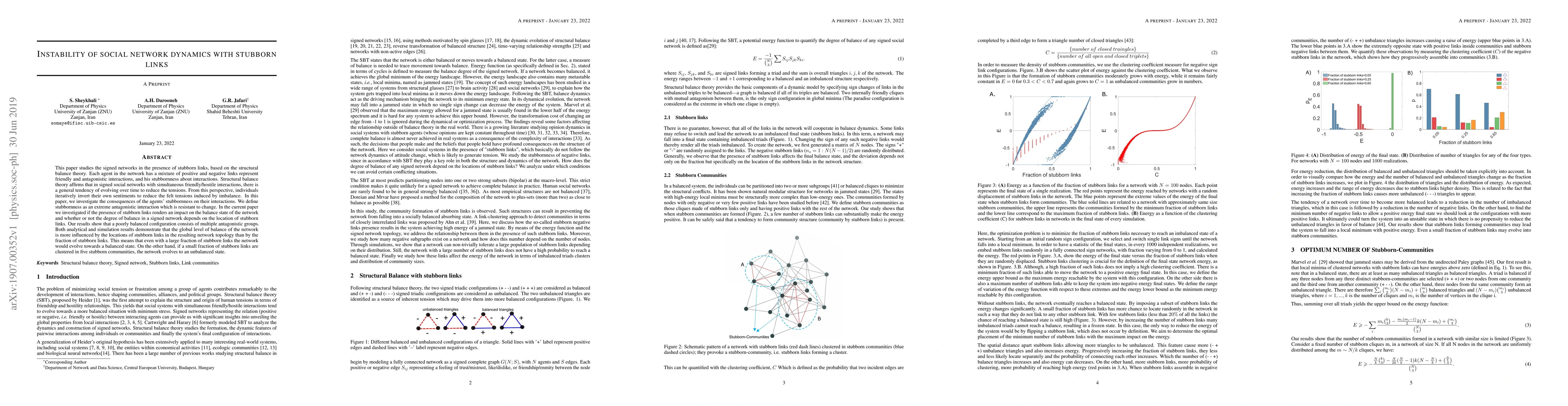 This paper studies the signed networks in the presence of stubborn links, based on the structural balance theory. Each agent in the network has a mixture of positive and negative links represent friendly and antagonistic interactions and his stubbornness about interactions. Structural balance theory affirms that in signed social networks with simultaneous friendly/hostile interactions, there is a general tendency of evolving over time to reduce the tensions. From this perspective, individuals iteratively invert their own sentiments to reduce the felt tensions induced by imbalance. In this paper, we investigate the consequences of the agents' stubbornness on their interactions. We define stubbornness as an extreme antagonistic interaction which is resistant to change. In the current paper, we investigated if the presence of stubborn links renders an impact on the balance state of the network and whether or not the degree of balance in a signed network depends on the location of stubborn links. Our results show that a poorly balanced configuration consists of multiple antagonistic groups. Both analytical and simulation results demonstrate that the global level of balance of the network is more influenced by the locations of stubborn links in the resulting network topology than by the fraction of stubborn links. This means that even with a large fraction of stubborn links the network would evolve towards a balanced state. On the other hand, if a small fraction of stubborn links are clustered in five stubborn communities, the network evolves to an unbalanced state.