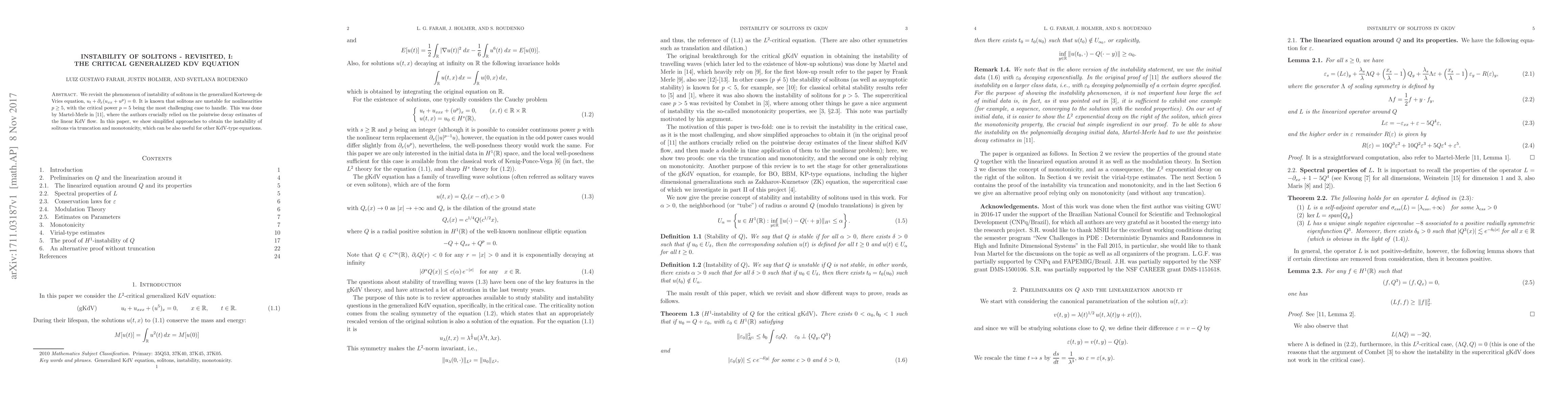 This paper revisits the instability of solitons in the critical generalized KdV equation, focusing on nonlinearities where $p \geq 5$. It simplifies the proof of the instability for $p=5$ using truncation and monotonicity, offering a potentially useful method for other KdV-type equations.