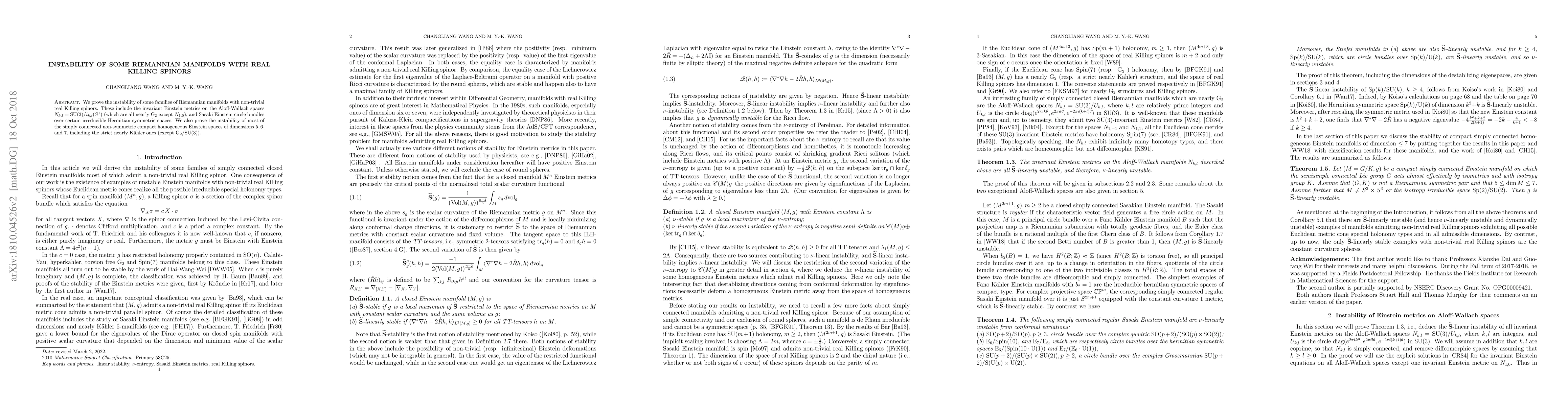 We prove the instability of some families of Riemannian manifolds with non-trivial real Killing spinors. These include the invariant Einstein metrics on the Aloff-Wallach spaces $N_{k, l}={\rm SU}(3)/i_{k, l}(S^{1})$ (which are all nearly ${\rm G}_2$ except $N_{1,0}$), and Sasaki Einstein circle bundles over certain irreducible Hermitian symmetric spaces. We also prove the instability of most of the simply connected non-symmetric compact homogeneous Einstein spaces of dimensions $5, 6, $ and $7$, including the strict nearly K\"ahler ones (except ${\rm G}_2/{\rm SU}(3)$).
