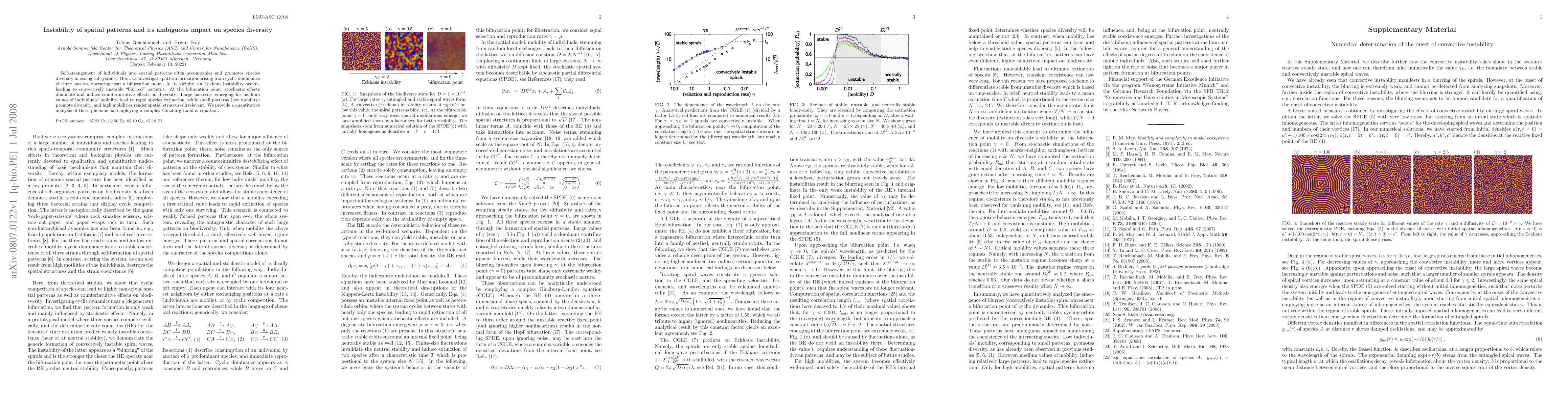 This paper explores how spatial patterns formed by cyclic dominance among three species near a bifurcation point can lead to complex effects on species diversity, revealing that large patterns promote extinction while small patterns enhance diversity, with high mobility diminishing spatial structure relevance. The study uses a complex Ginzburg-Landau equation for quantitative analysis.