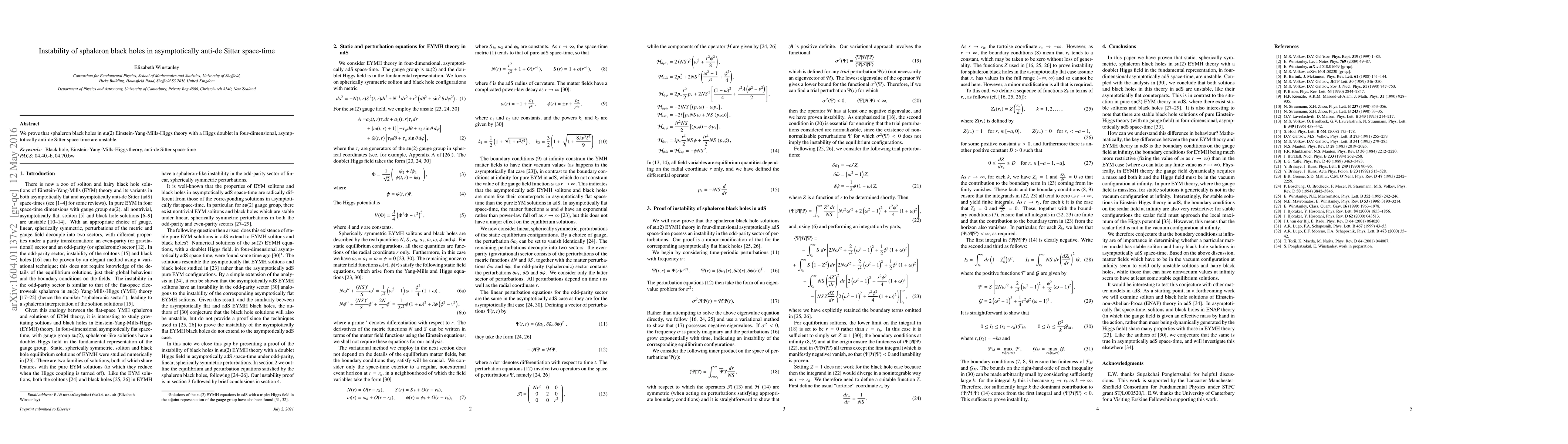 Summary: The research demonstrates the instability of sphaleron black holes in four-dimensional ${\mathfrak {su}}(2)$ Einstein-Yang-Mills-Higgs theory within asymptotically anti-de Sitter space-time. These findings suggest significant implications for the dynamics of such black holes.