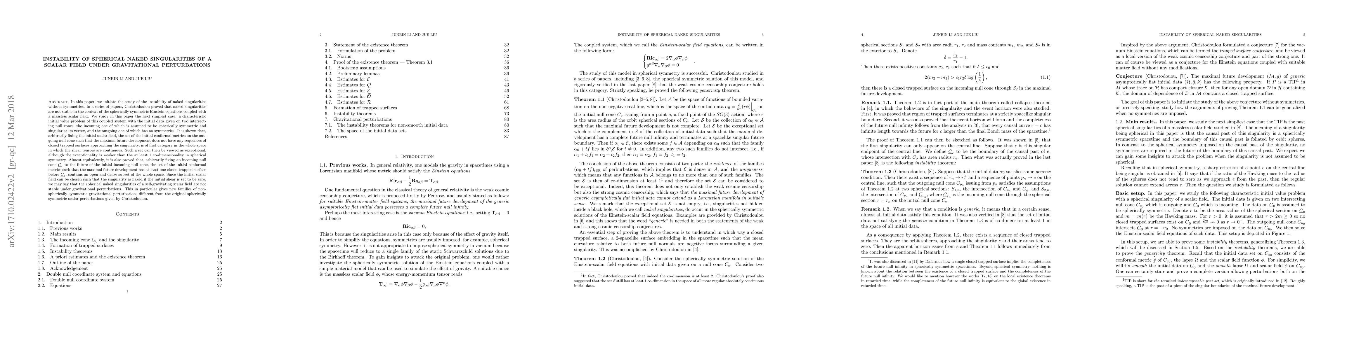 This paper investigates the instability of spherical naked singularities in a scalar field under gravitational perturbations, demonstrating that such singularities are not stable. It shows that for non-symmetric initial conditions, the maximal future development lacks sequences of closed trapped surfaces approaching the singularity, indicating instability.