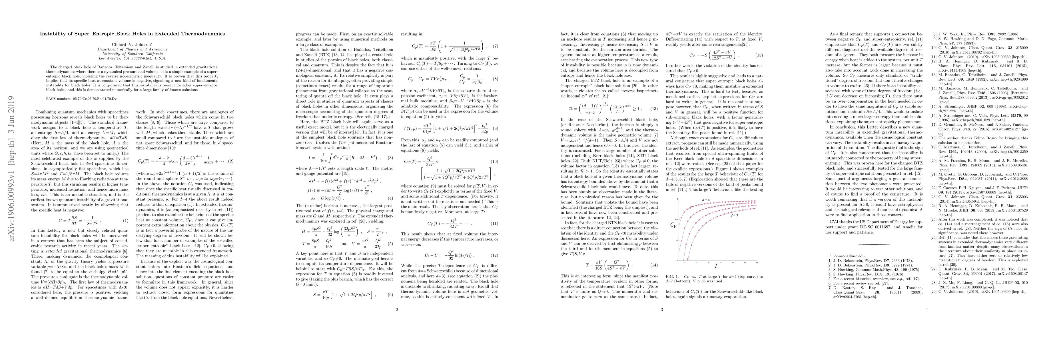The charged black hole of Banados, Teitelbiom and Zanelli is studied in extended gravitational thermodynamics where there is a dynamical pressure and volume. It is a simple example of a super-entropic black hole, violating the reverse isoperimetric inequality. It is proven that this property implies that its specific heat at constant volume is negative, signalling a new kind of fundamental instability for black holes. It is conjectured that this instability is present for other super-entropic black holes, and this is demonstrated numerically for a large family of known solutions.