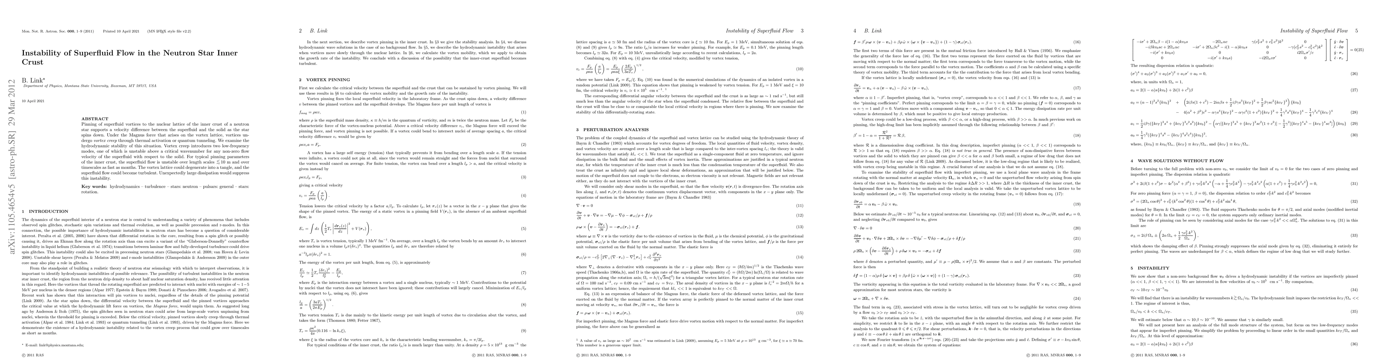 This paper investigates the hydrodynamic instability of superfluid vortices in neutron star inner crusts, finding that vortex creep can lead to an unstable superfluid flow over length scales of about 10 meters and timescales of months, potentially causing turbulence and large dissipation.