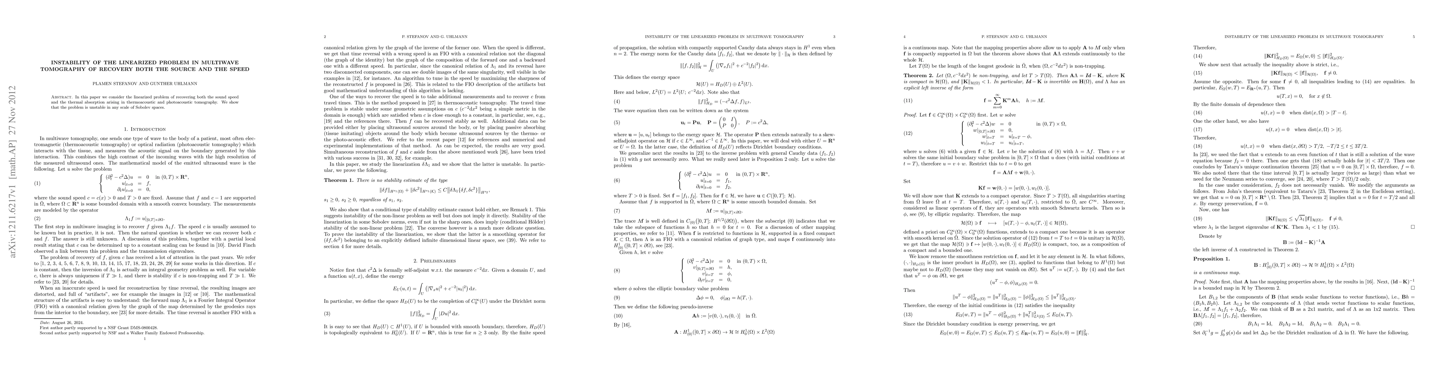 In this paper we consider the linearized problem of recovering both the sound speed and the thermal absorption arising in thermoacoustic and photoacoustic tomography. We show that the problem is unstable in any scale of Sobolev spaces.
