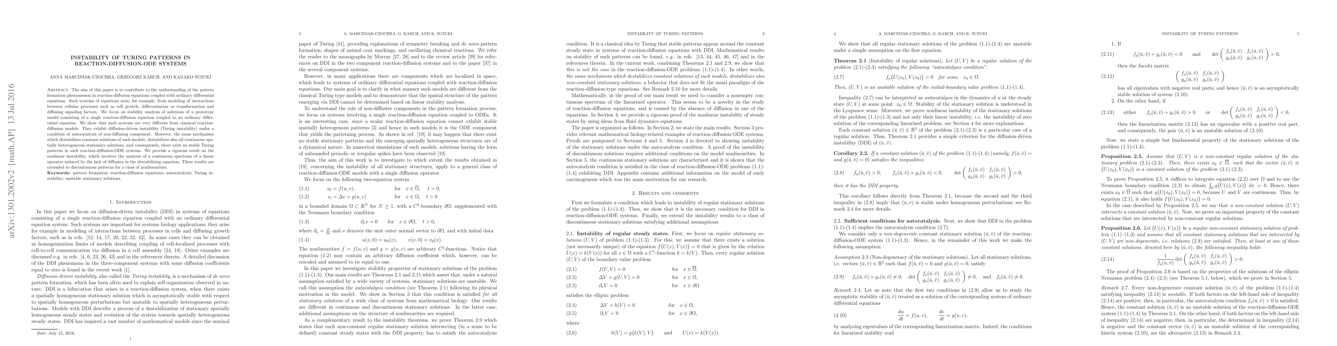 This paper investigates the stability of Turing patterns in reaction-diffusion-ODE systems, revealing that such systems lack stable Turing patterns due to diffusion-driven instability driven by autocatalysis in non-diffusing components. The study provides a rigorous nonlinear instability analysis, extending findings to discontinuous patterns.