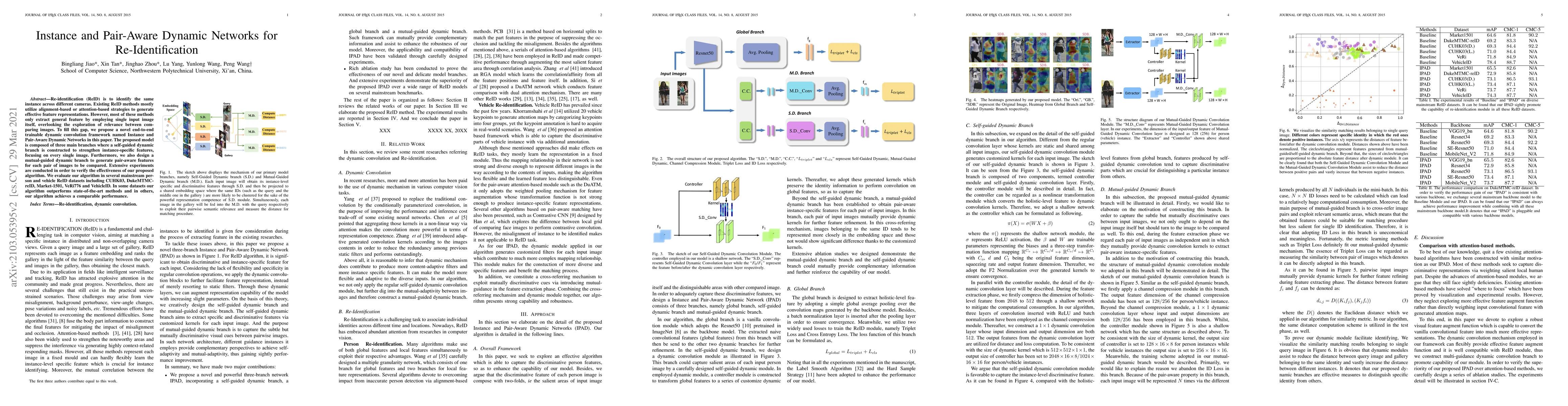 A new Re-identification method, Instance and Pair-Aware Dynamic Networks, improves feature extraction by exploring relevance between comparing images, outperforming state-of-the-art methods in some cases.