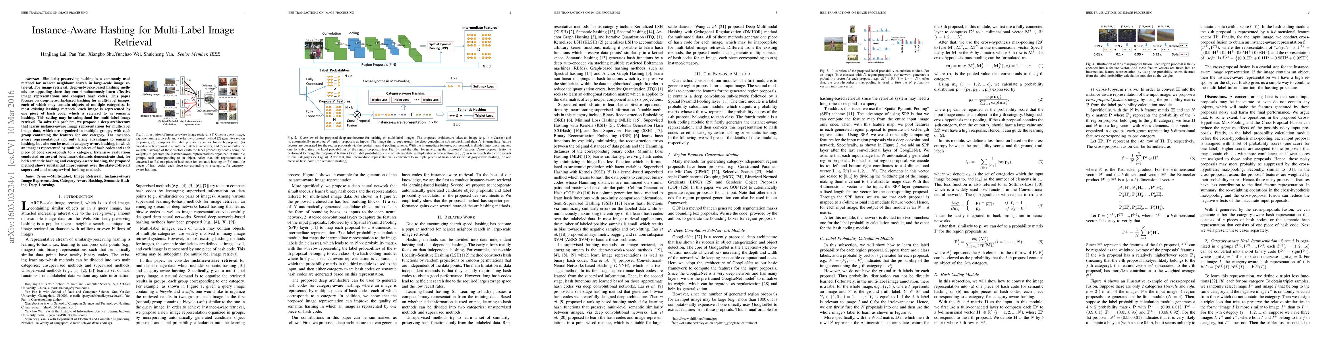 This paper proposes a deep-networks-based hashing method for multi-label image retrieval that uses instance-aware representations, organized in multiple groups corresponding to different categories. The method significantly outperforms existing methods for both semantic and category-aware hashing, as demonstrated by evaluations on benchmark datasets.