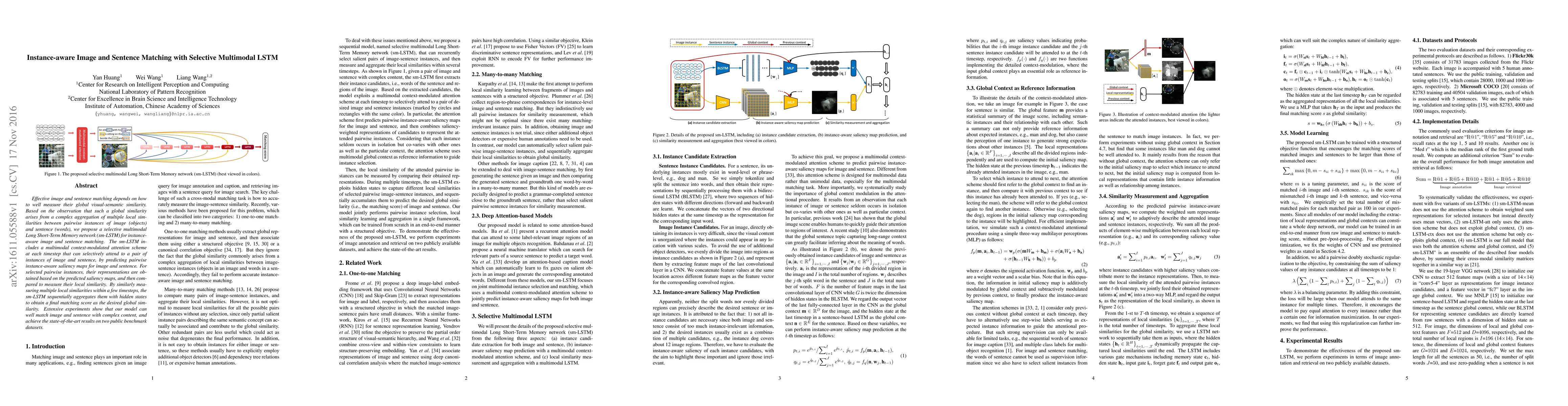 The research proposes a selective multimodal LSTM (sm-LSTM) for instance-aware image and sentence matching, using context-modulated attention to measure local similarities between instances. The model aggregates these local similarities over time to determine global visual-semantic similarity, achieving state-of-the-art results on benchmark datasets.