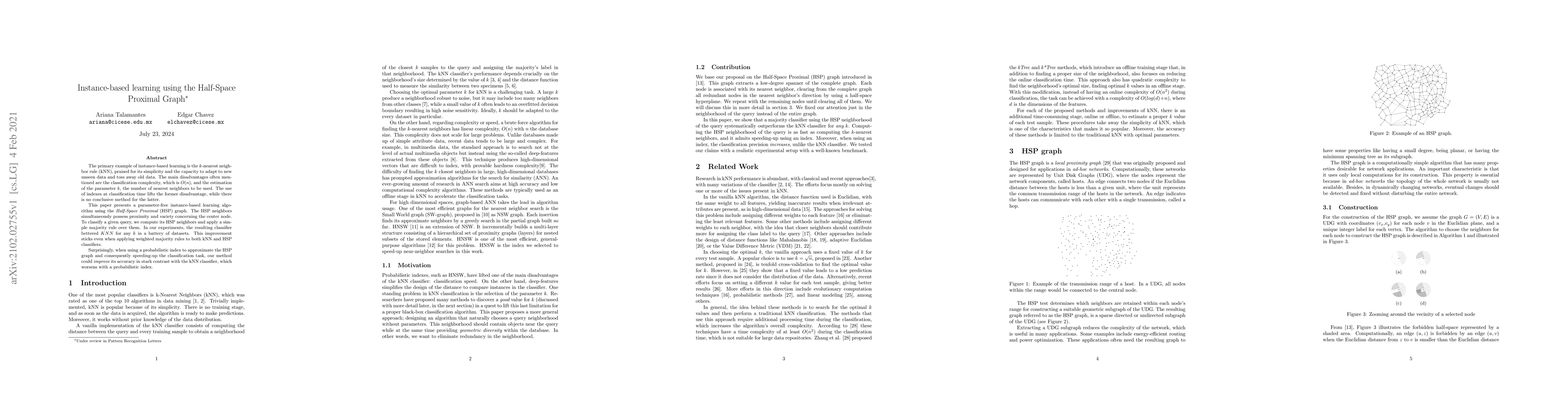The primary example of instance-based learning is the $k$-nearest neighbor rule (kNN), praised for its simplicity and the capacity to adapt to new unseen data and toss away old data. The main disadvantages often mentioned are the classification complexity, which is $O(n)$, and the estimation of the parameter $k$, the number of nearest neighbors to be used. The use of indexes at classification time lifts the former disadvantage, while there is no conclusive method for the latter. This paper presents a parameter-free instance-based learning algorithm using the {\em Half-Space Proximal} (HSP) graph. The HSP neighbors simultaneously possess proximity and variety concerning the center node. To classify a given query, we compute its HSP neighbors and apply a simple majority rule over them. In our experiments, the resulting classifier bettered $KNN$ for any $k$ in a battery of datasets. This improvement sticks even when applying weighted majority rules to both kNN and HSP classifiers. Surprisingly, when using a probabilistic index to approximate the HSP graph and consequently speeding-up the classification task, our method could {\em improve} its accuracy in stark contrast with the kNN classifier, which worsens with a probabilistic index.