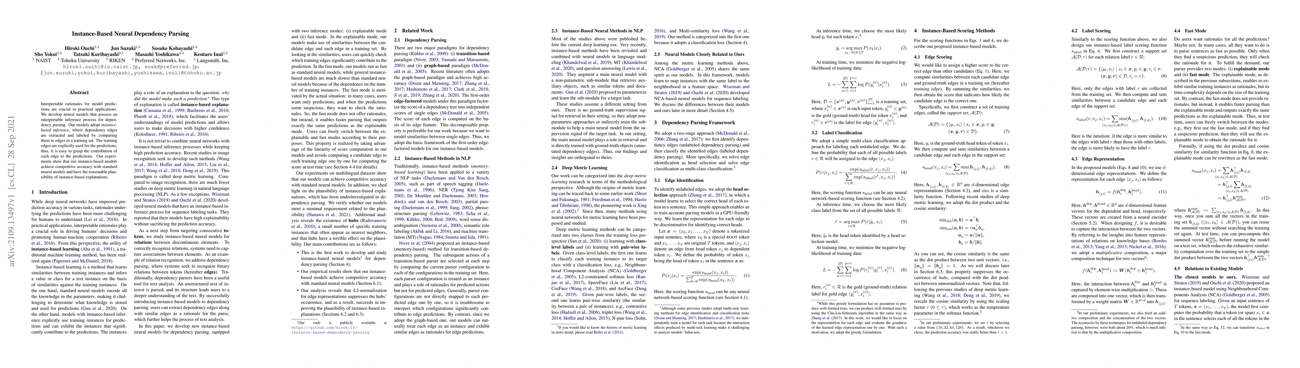 This research introduces interpretable neural models for dependency parsing that utilize instance-based inference, providing clear rationales for predictions by comparing new edges to those in a training set. The models achieve competitive accuracy with standard neural parsers while offering plausible explanations for their predictions.