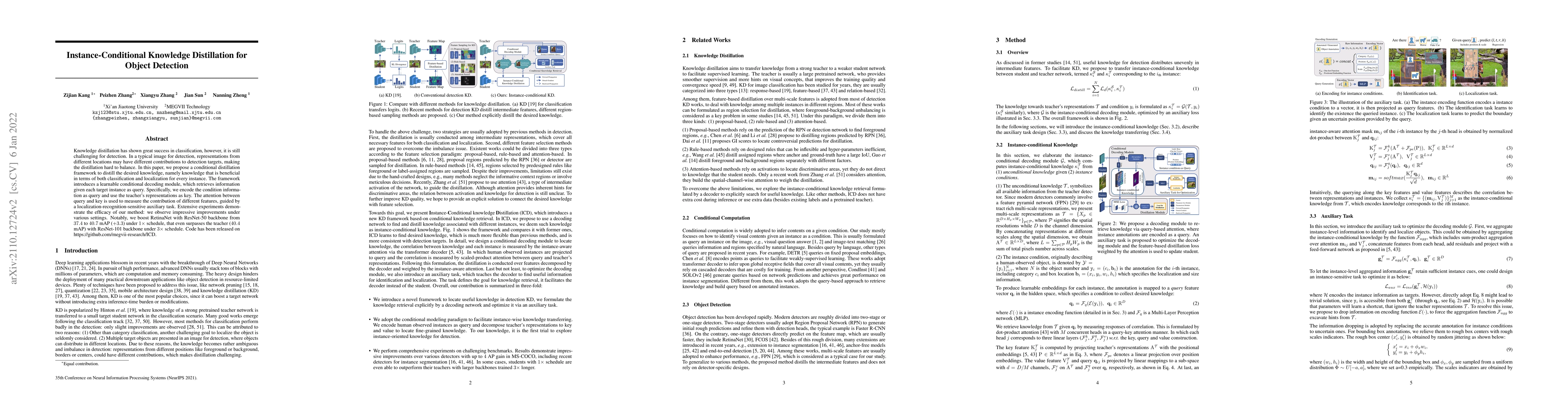 This paper proposes an instance-conditional knowledge distillation framework for object detection, introducing a learnable conditional decoding module to balance contributions from different image locations. The method achieves notable improvements, boosting RetinaNet's mAP from 37.4 to 40.7, surpassing a teacher model with a more powerful backbone.
