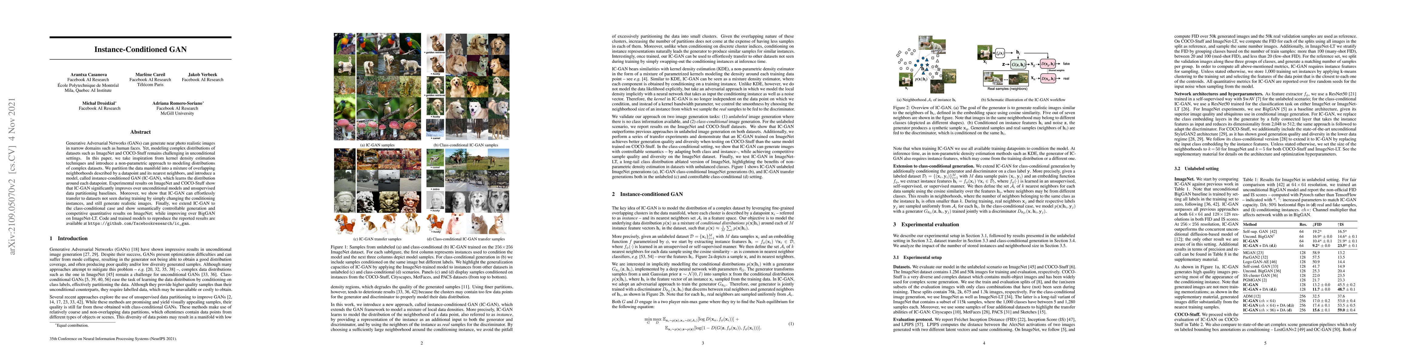 This paper introduces an instance-conditioned GAN (IC-GAN) that models complex data distributions by partitioning the data manifold into neighborhoods around datapoints and their nearest neighbors, significantly improving over unconditional models on datasets like ImageNet and COCO-Stuff. The approach also enables realistic image generation on unseen datasets and extends to class-conditional generation with competitive results.