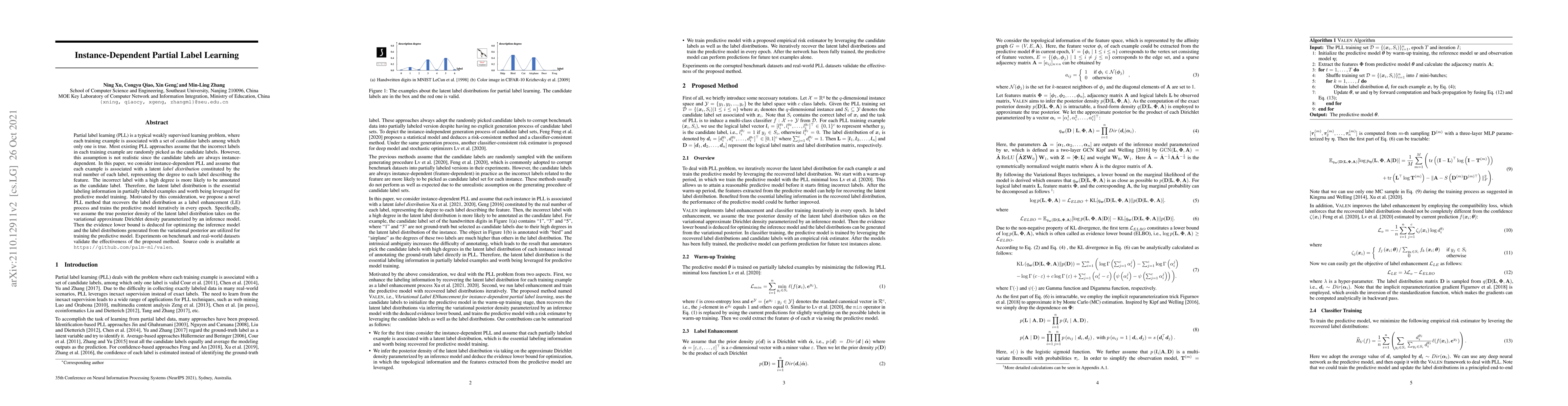 This paper proposes a novel instance-dependent partial label learning method that leverages a latent label distribution to better represent the likelihood of each label. The method iteratively recovers this distribution and trains a predictive model, demonstrating improved performance on benchmark and real-world datasets.