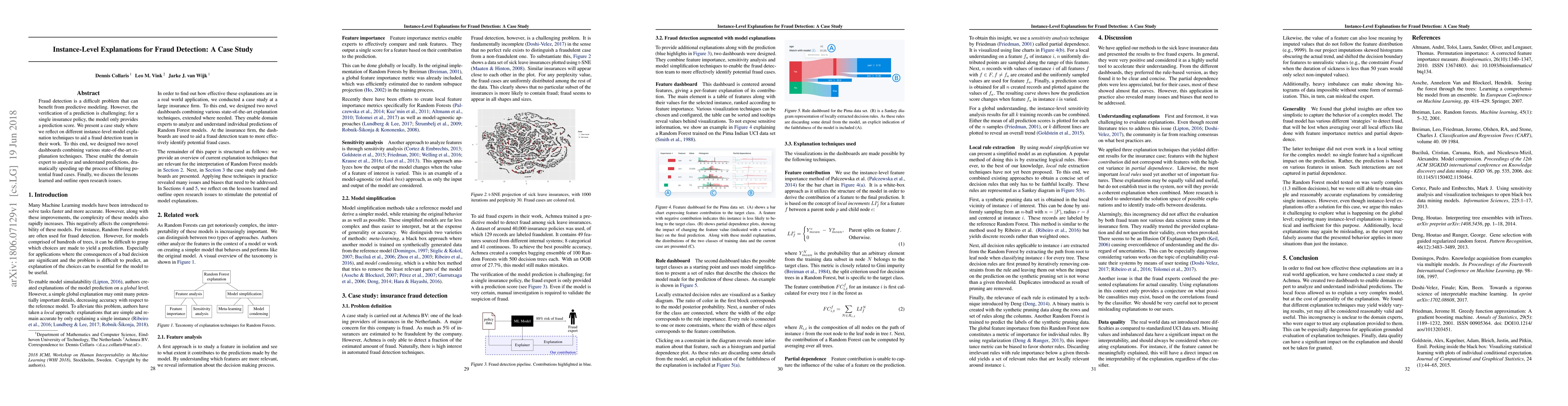 Fraud detection is a difficult problem that can benefit from predictive modeling. However, the verification of a prediction is challenging; for a single insurance policy, the model only provides a prediction score. We present a case study where we reflect on different instance-level model explanation techniques to aid a fraud detection team in their work. To this end, we designed two novel dashboards combining various state-of-the-art explanation techniques. These enable the domain expert to analyze and understand predictions, dramatically speeding up the process of filtering potential fraud cases. Finally, we discuss the lessons learned and outline open research issues.