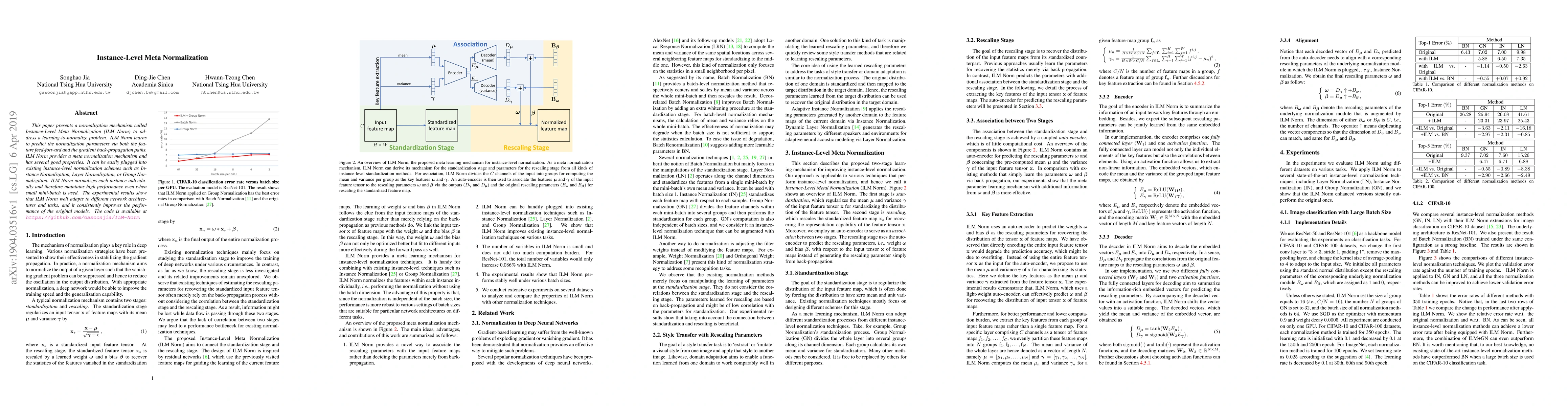 This paper introduces Instance-Level Meta Normalization (ILM~Norm), a mechanism that predicts normalization parameters through feature and gradient paths to enhance model performance, particularly in small mini-batch scenarios. Experimental results demonstrate consistent improvements across various network architectures and tasks.