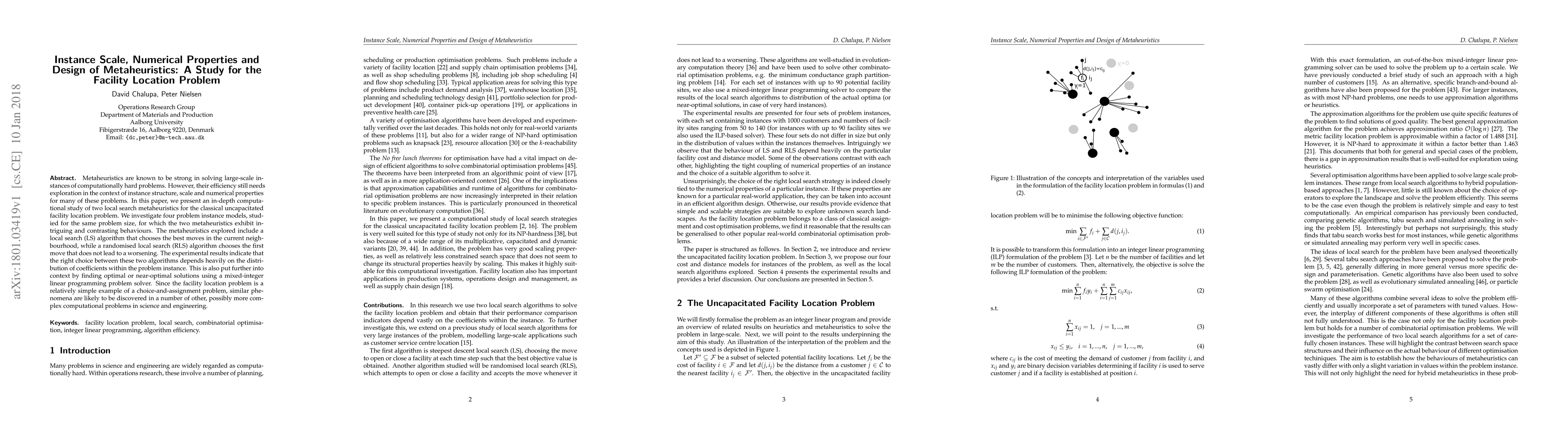 This paper conducts a detailed computational study comparing two local search metaheuristics—a local search (LS) and a randomised local search (RLS)—for solving the uncapacitated facility location problem. The study reveals that the effectiveness of these algorithms depends significantly on the numerical properties and structure of the problem instances, suggesting broader implications for other complex computational problems.
