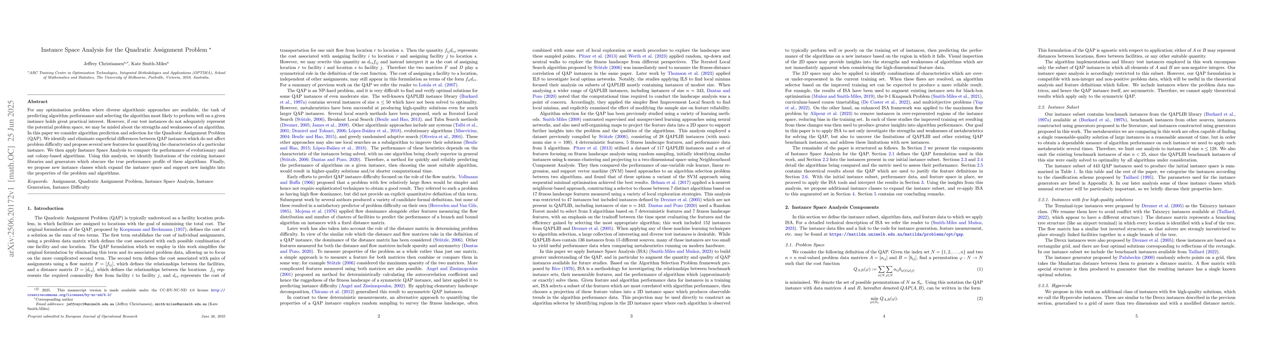 For any optimisation problem where diverse algorithmic approaches are available, the task of predicting algorithm performance and selecting the algorithm most likely to perform well on a given instance holds great practical interest. However, if our test instances do not adequately represent the potential problem space, we may be misled about the strengths and weaknesses of an algorithm. In this paper we consider algorithm prediction and selection for the Quadratic Assignment Problem (QAP). We identify and eliminate superficial differences between QAP instances which do not affect problem difficulty and propose several new features for quantifying the characteristics of a particular instance. We then apply Instance Space Analysis to compare the performance of evolutionary and ant colony-based algorithms. Using this analysis, we identify limitations of the existing instance libraries and generators which obscure the true performance profile of these algorithms. Finally, we propose new instance classes which expand the instance space and support new insights into the properties of the problem and algorithms.