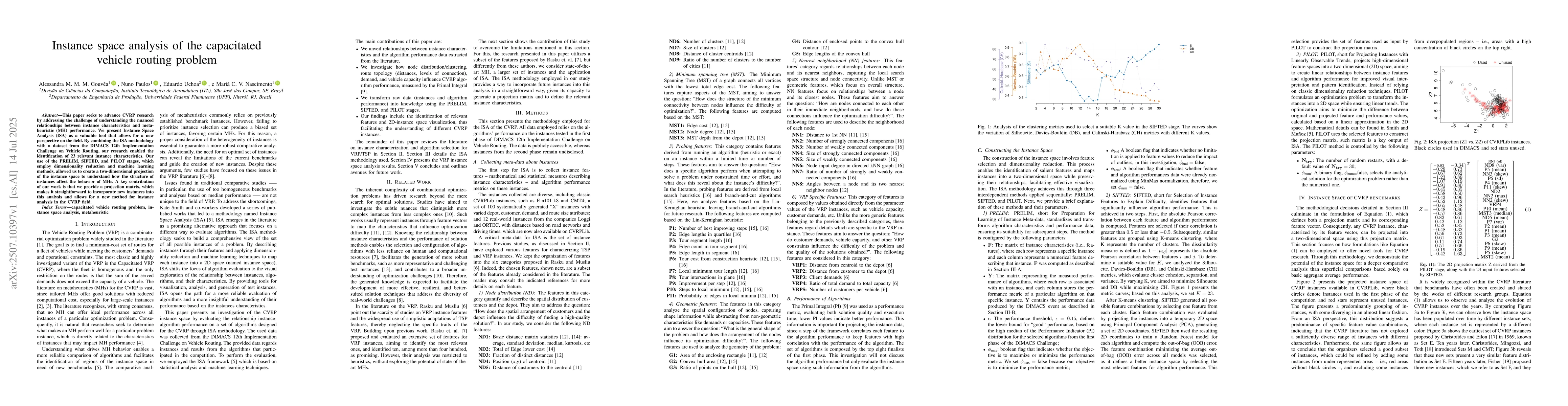 This paper seeks to advance CVRP research by addressing the challenge of understanding the nuanced relationships between instance characteristics and metaheuristic (MH) performance. We present Instance Space Analysis (ISA) as a valuable tool that allows for a new perspective on the field. By combining the ISA methodology with a dataset from the DIMACS 12th Implementation Challenge on Vehicle Routing, our research enabled the identification of 23 relevant instance characteristics. Our use of the PRELIM, SIFTED, and PILOT stages, which employ dimensionality reduction and machine learning methods, allowed us to create a two-dimensional projection of the instance space to understand how the structure of instances affect the behavior of MHs. A key contribution of our work is that we provide a projection matrix, which makes it straightforward to incorporate new instances into this analysis and allows for a new method for instance analysis in the CVRP field.