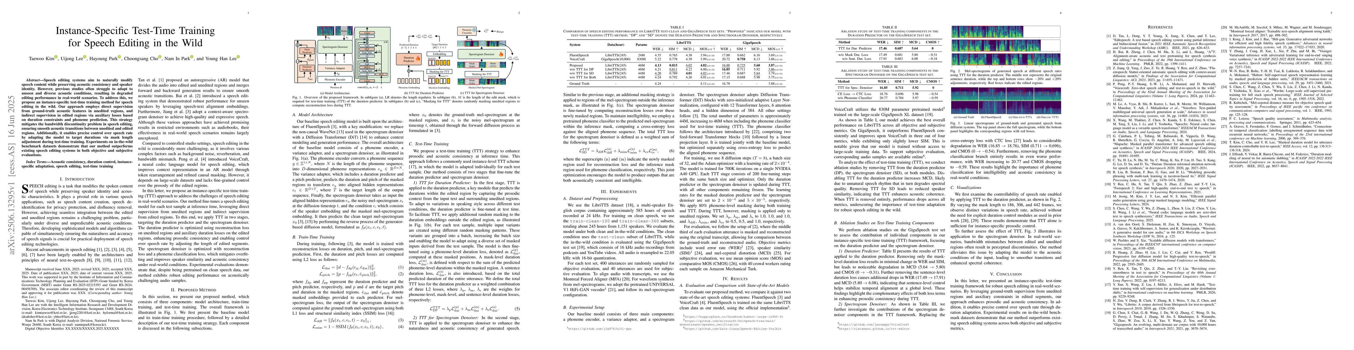 The paper introduces an instance-specific test-time training method to improve speech editing systems' performance in real-world scenarios. This approach uses direct and indirect supervision, addressing bandwidth discontinuity and enabling precise control over speech rate, outperforming existing systems in both objective and subjective evaluations.