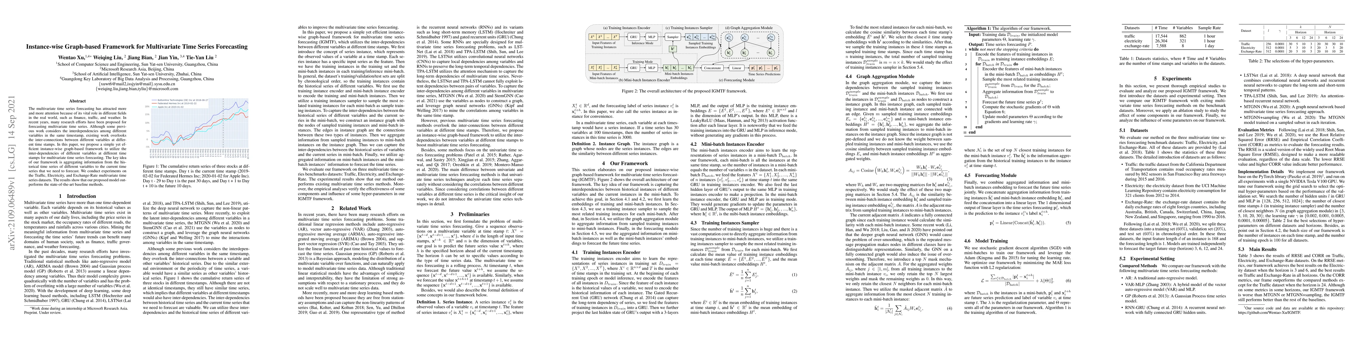 The multivariate time series forecasting has attracted more and more attention because of its vital role in different fields in the real world, such as finance, traffic, and weather. In recent years, many research efforts have been proposed for forecasting multivariate time series. Although some previous work considers the interdependencies among different variables in the same timestamp, existing work overlooks the inter-connections between different variables at different time stamps. In this paper, we propose a simple yet efficient instance-wise graph-based framework to utilize the inter-dependencies of different variables at different time stamps for multivariate time series forecasting. The key idea of our framework is aggregating information from the historical time series of different variables to the current time series that we need to forecast. We conduct experiments on the Traffic, Electricity, and Exchange-Rate multivariate time series datasets. The results show that our proposed model outperforms the state-of-the-art baseline methods.