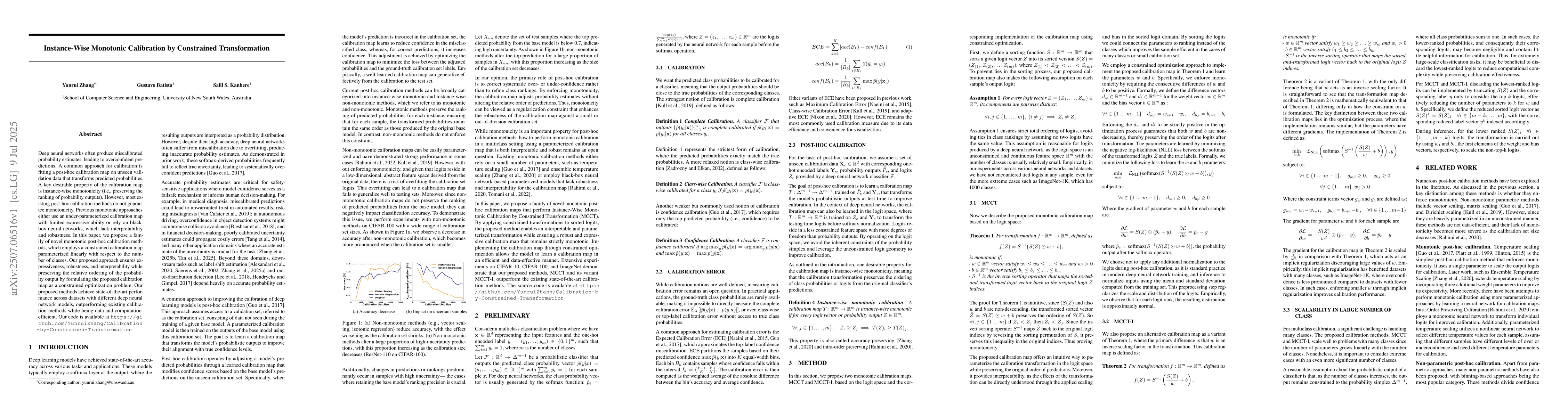 Deep neural networks often produce miscalibrated probability estimates, leading to overconfident predictions. A common approach for calibration is fitting a post-hoc calibration map on unseen validation data that transforms predicted probabilities. A key desirable property of the calibration map is instance-wise monotonicity (i.e., preserving the ranking of probability outputs). However, most existing post-hoc calibration methods do not guarantee monotonicity. Previous monotonic approaches either use an under-parameterized calibration map with limited expressive ability or rely on black-box neural networks, which lack interpretability and robustness. In this paper, we propose a family of novel monotonic post-hoc calibration methods, which employs a constrained calibration map parameterized linearly with respect to the number of classes. Our proposed approach ensures expressiveness, robustness, and interpretability while preserving the relative ordering of the probability output by formulating the proposed calibration map as a constrained optimization problem. Our proposed methods achieve state-of-the-art performance across datasets with different deep neural network models, outperforming existing calibration methods while being data and computation-efficient. Our code is available at https://github.com/YunruiZhang/Calibration-by-Constrained-Transformation