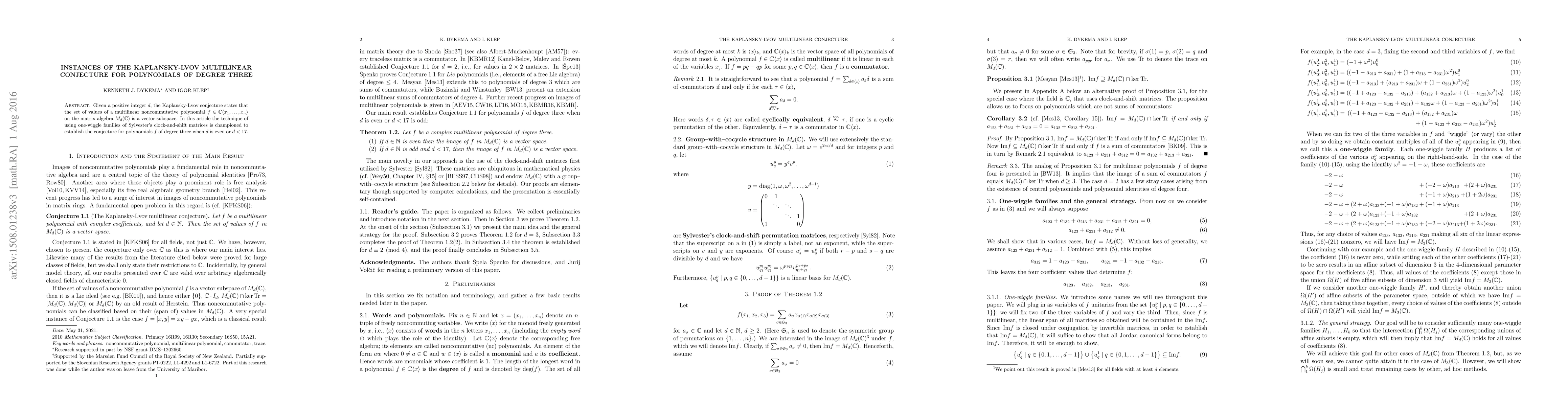 Researchers prove the Kaplansky-Lvov multilinear conjecture for polynomials of degree three in specific cases, advancing the understanding of noncommutative polynomial theory.