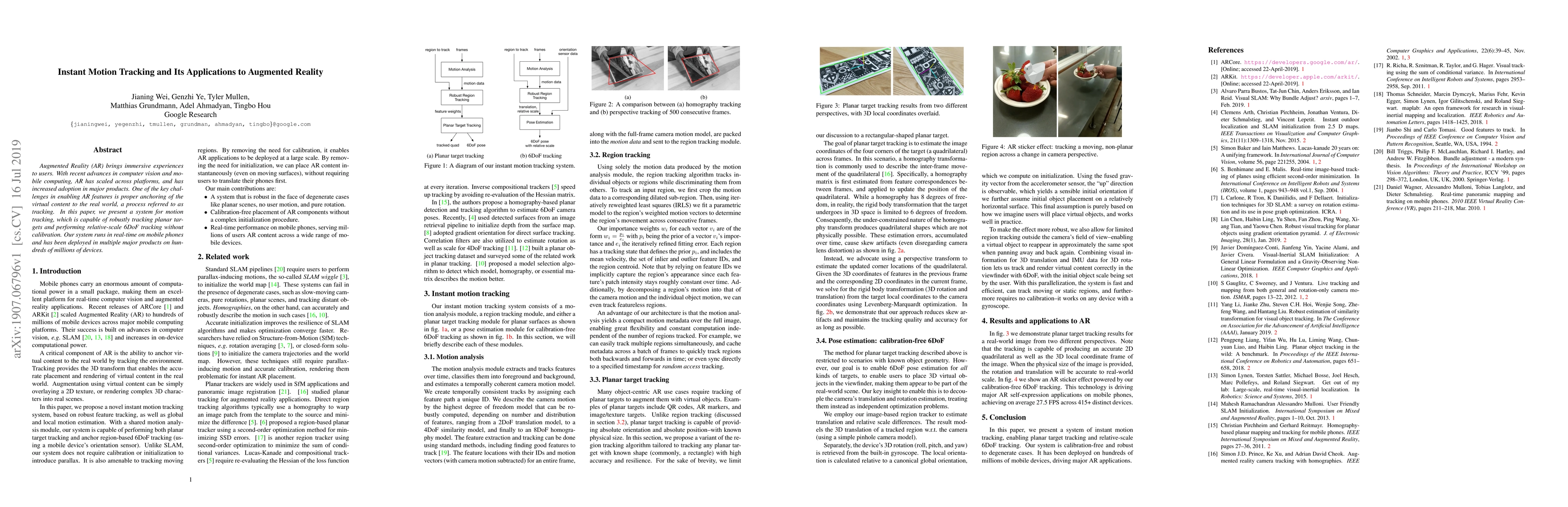 This paper introduces a real-time motion tracking system for augmented reality that robustly tracks planar targets and performs 6DoF tracking without calibration, enabling the anchoring of virtual content to the real world and deployed in major products on millions of devices.