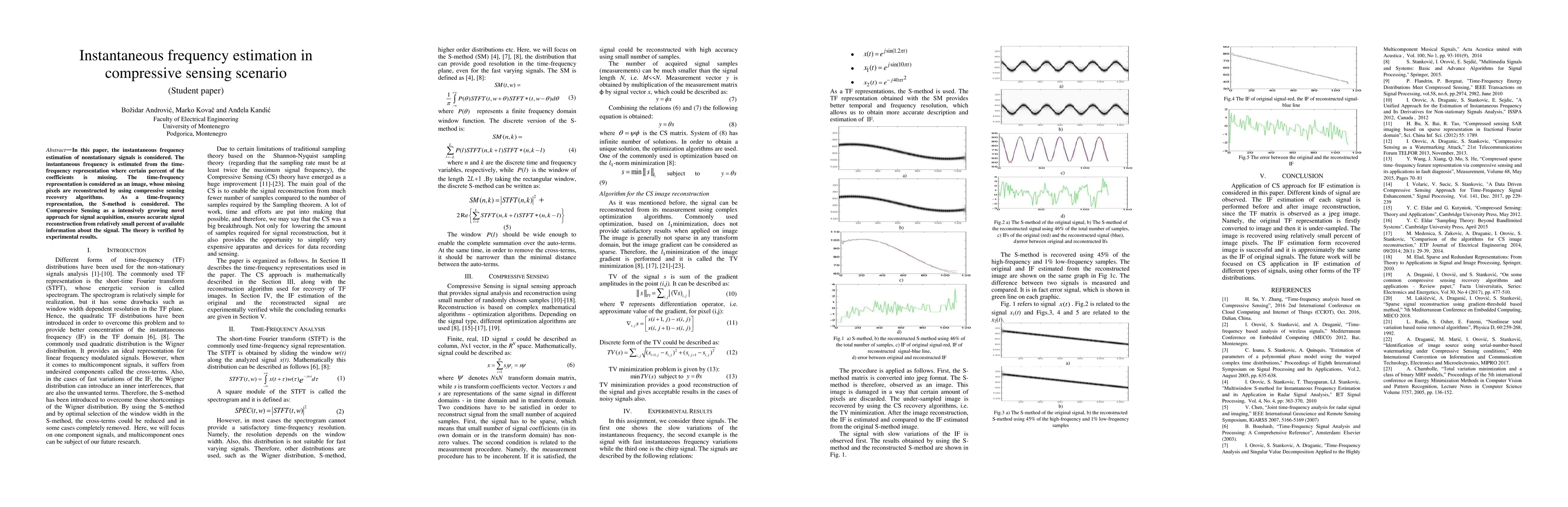 The paper presents a novel approach for IF estimation using Compressive Sensing and the S-method, combined with TV minimization for image recovery.