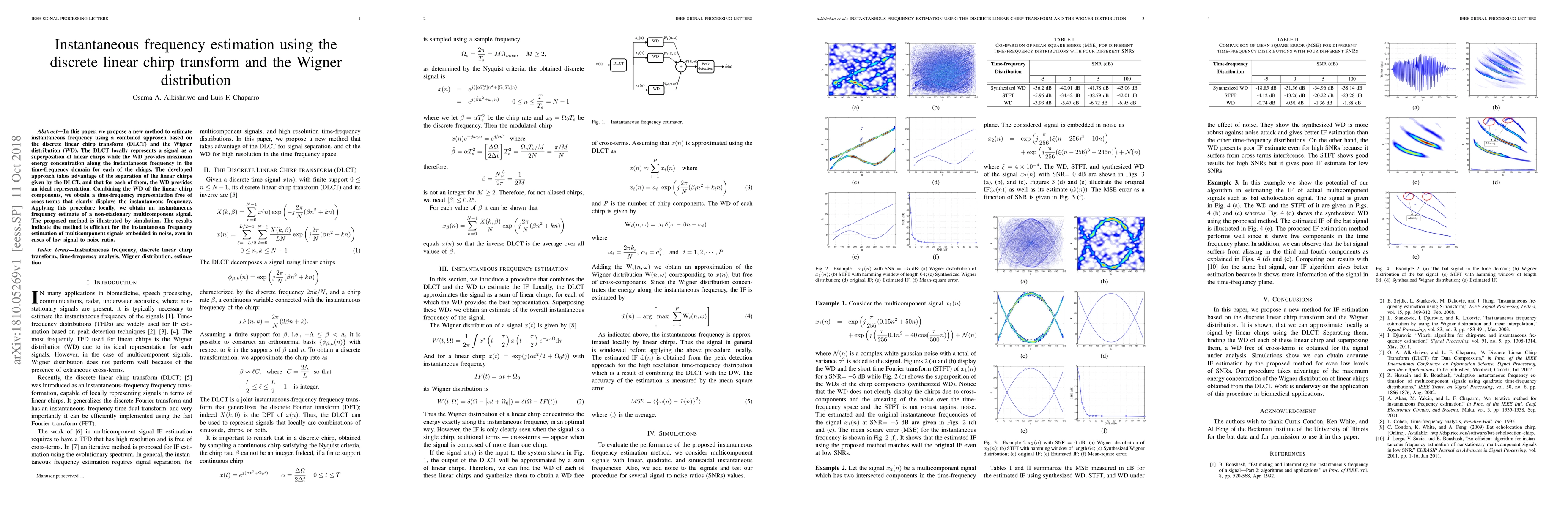 This paper proposes a novel method for estimating instantaneous frequency using a combination of the discrete linear chirp transform (DLCT) and the Wigner distribution (WD). The method leverages the DLCT to represent signals as linear chirps and the WD for optimal time-frequency representation, resulting in an efficient, noise-resistant instantaneous frequency estimation for multicomponent signals.
