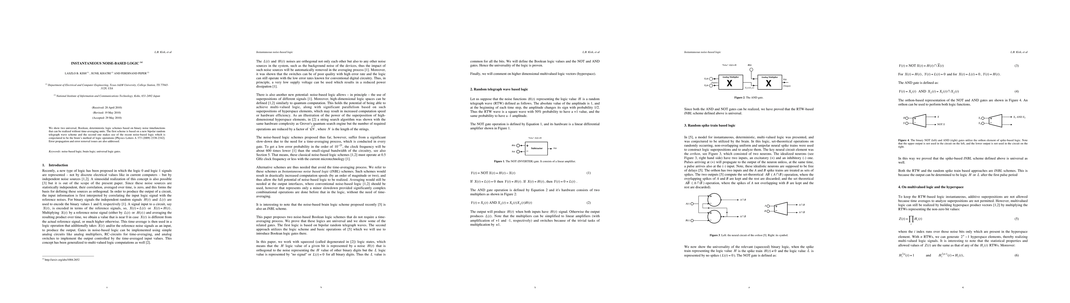 This research introduces two novel deterministic logic schemes using binary noise time functions that function instantaneously without time-averaging units. The schemes include a bipolar random telegraph wave and an existing noise-based logic, with discussions on error propagation and removal.