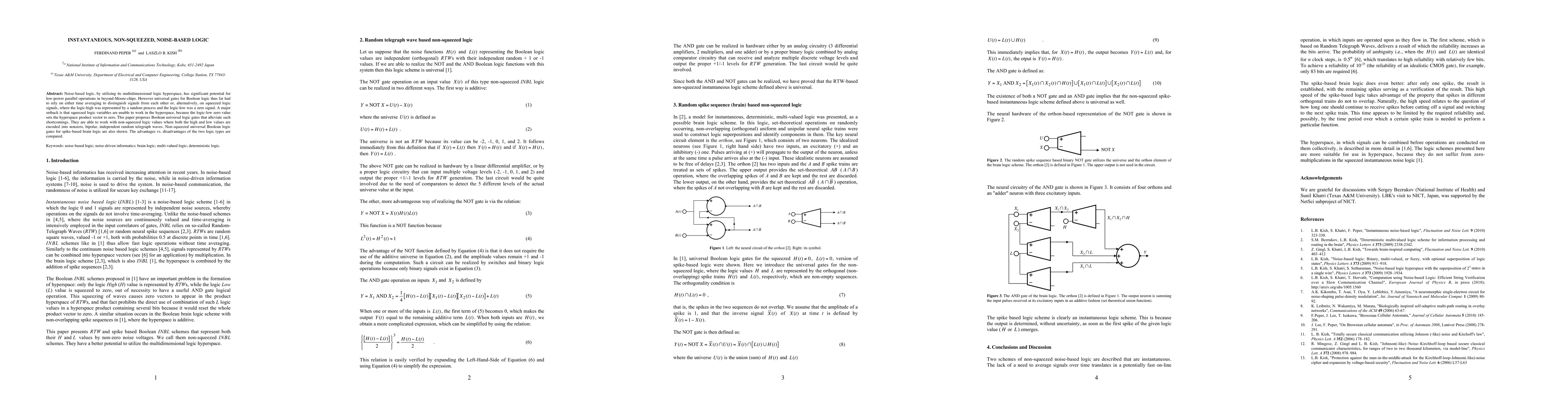 Noise-based logic, by utilizing its multidimensional logic hyperspace, has significant potential for low-power parallel operations in beyond-Moore-chips. However universal gates for Boolean logic thus far had to rely on either time averaging to distinguish signals from each other or, alternatively, on squeezed logic signals, where the logic-high was represented by a random process and the logic-low was a zero signal. A major setback is that squeezed logic variables are unable to work in the hyperspace, because the logic-low zero value sets the hyperspace product vector to zero. This paper proposes Boolean universal logic gates that alleviate such shortcomings. They are able to work with non-squeezed logic values where both the high and low values are encoded into nonzero, bipolar, independent random telegraph waves. Non-squeezed universal Boolean logic gates for spike-based brain logic are also shown. The advantages vs. disadvantages of the two logic types are compared.