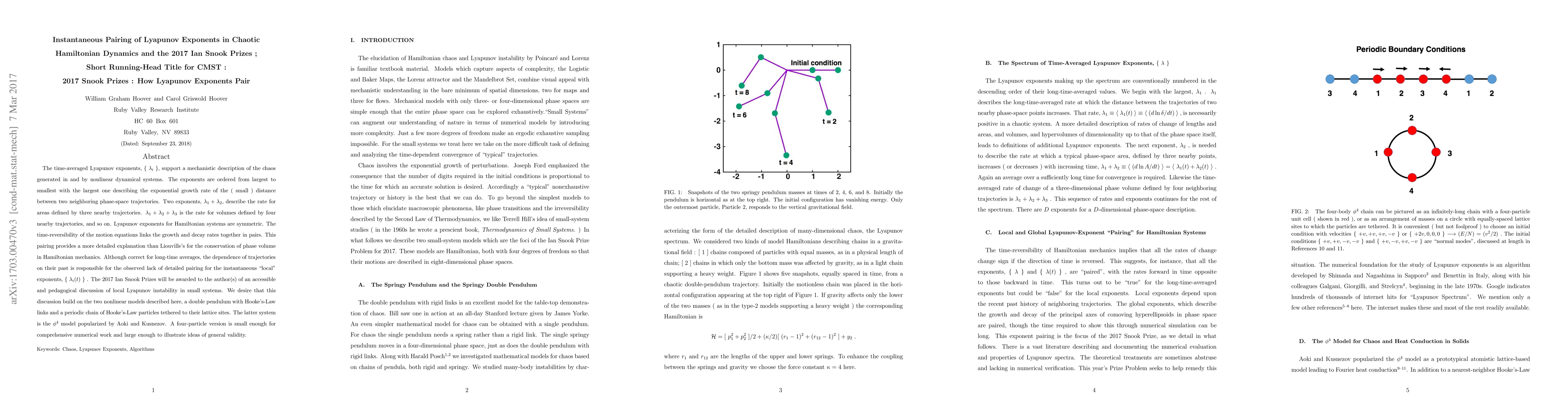 The time-averaged Lyapunov exponents support a mechanistic description of the chaos generated in and by nonlinear dynamical systems. The exponents are ordered from largest to smallest with the largest one describing the exponential growth rate of the (small) distance between two neighboring phase-space trajectories. Two exponents describe the rate for areas defined by three nearby trajectories. The sum of the first three exponents is the rate for volumes defined by four nearby trajectories, and so on. Lyapunov exponents for Hamiltonian systems are symmetric. The time-reversibility of the motion equations links the growth and decay rates together in pairs. This pairing provides a more detailed explanation than Liouville's for the conservation of phase volume in Hamiltonian mechanics. Although correct for long-time averages, the dependence of trajectories on their past is responsible for the observed lack of detailed pairing for the instantaneous "local" exponents, $\{\ \lambda_i(t) \ \}$ . The 2017 Ian Snook Prizes will be awarded to the author(s) of an accessible and pedagogical discussion of local Lyapunov instability in small systems. We desire that this discussion build on the two nonlinear models described here, a double pendulum with Hooke's-Law links and a periodic chain of Hooke's-Law particles tethered to their lattice sites. The latter system is the $\phi^4$ model popularized by Aoki and Kusnezov. A four-particle version is small enough for comprehensive numerical work and large enough to illustrate ideas of general validity.