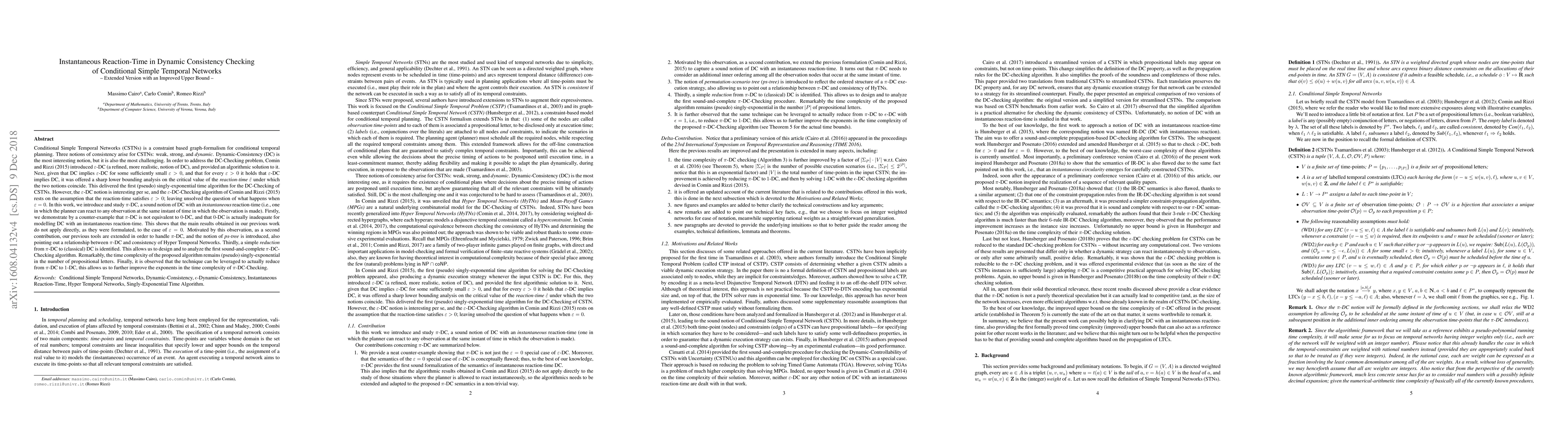 CSTNs is a constraint-based graph-formalism for conditional temporal planning. In order to address the DC-Checking problem, in [Comin and Rizzi, TIME 2015] we introduced epsilon-DC (a refined, more realistic, notion of DC), and provided an algorithmic solution to it. The epsilon-DC notion is interesting per se, and the epsilon-DC-Checking algorithm in [Comin and Rizzi, TIME 2015] rests on the assumption that the reaction-time satisfies epsilon > 0; leaving unsolved the question of what happens when epsilon = 0. In this work, we introduce and study pi-DC, a sound notion of DC with an instantaneous reaction-time (i.e. one in which the planner can react to any observation at the same instant of time in which the observation is made). Firstly, we demonstrate by a counter-example that pi-DC is not equivalent to 0-DC, and that 0-DC is actually inadequate for modeling DC with an instantaneous reaction-time. This shows that the main results obtained in our previous work do not apply directly, as they were formulated, to the case of epsilon=0. Motivated by this observation, as a second contribution, our previous tools are extended in order to handle pi-DC, and the notion of ps-tree is introduced, also pointing out a relationship between pi-DC and HyTN-Consistency. Thirdly, a simple reduction from pi-DC-Checking to DC-Checking is identified. This allows us to design and to analyze the first sound-and-complete pi-DC-Checking procedure. Remarkably, the time complexity of the proposed algorithm remains (pseudo) singly-exponential in the number of propositional letters. Finally, it is observed that the technique can be leveraged to actually reduce from pi-DC to 1-DC, this allows us to further improve the exponents in the time complexity of pi-DC-Checking.