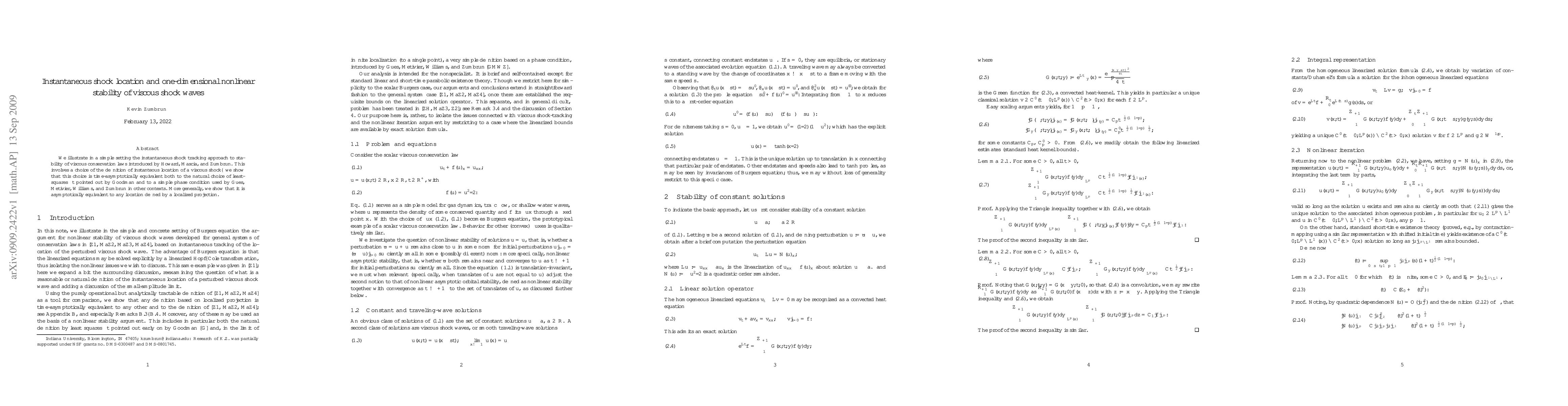 This paper explores the instantaneous shock tracking approach for the stability of viscous conservation laws, demonstrating that different definitions of shock location are asymptotically equivalent, including least-squares fit and localized projection methods. The study highlights the robustness of these definitions in capturing shock behavior.