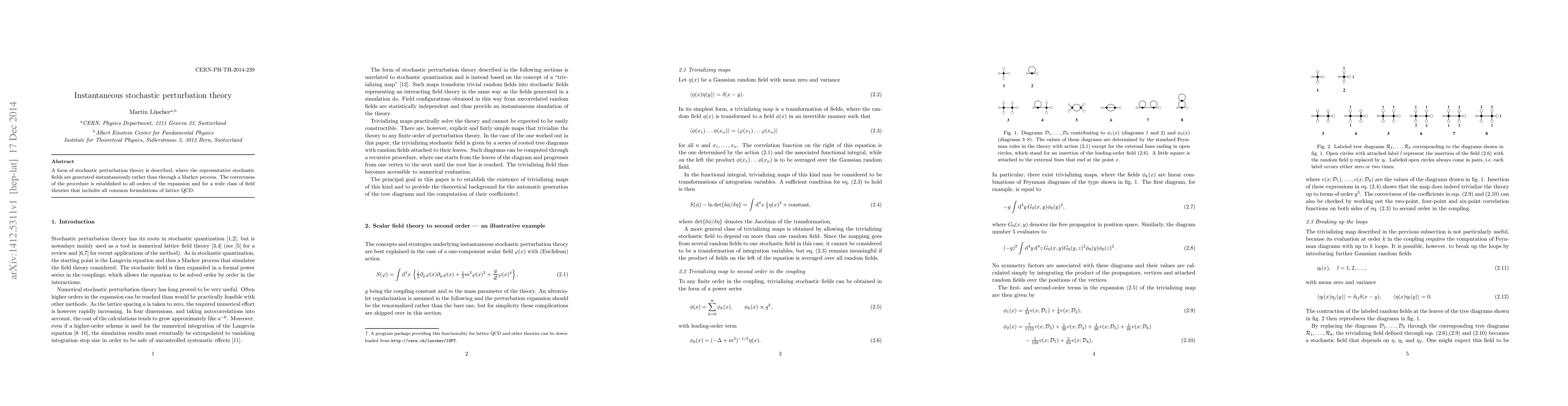 A form of stochastic perturbation theory is described, where the representative stochastic fields are generated instantaneously rather than through a Markov process. The correctness of the procedure is established to all orders of the expansion and for a wide class of field theories that includes all common formulations of lattice QCD.