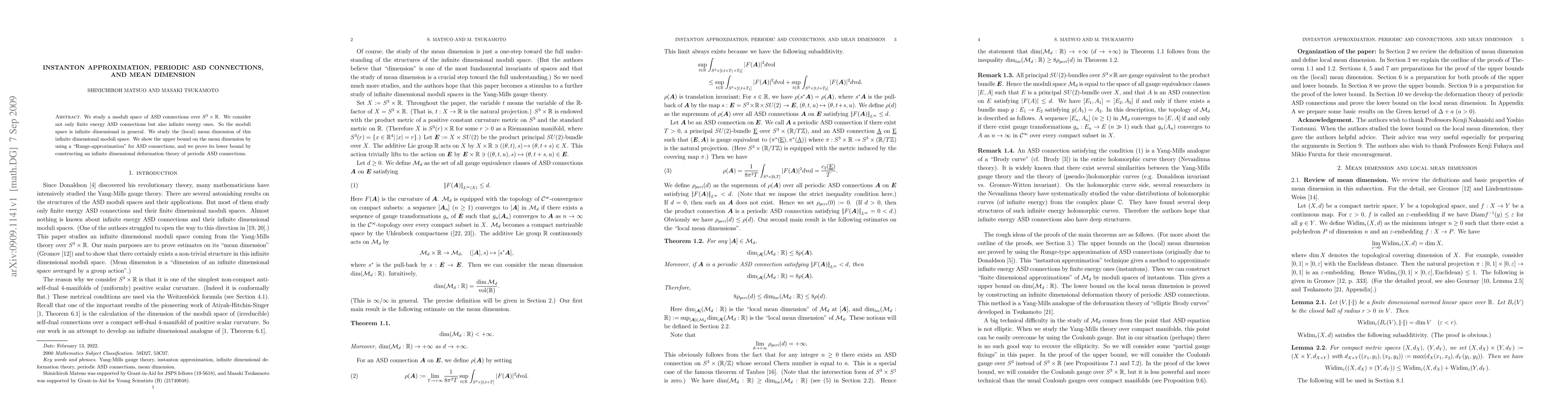 We study a moduli space of ASD connections over $S^3\times \mathbb{R}$. We consider not only finite energy ASD connections but also infinite energy ones. So the moduli space is infinite dimensional in general. We study the (local) mean dimension of this infinite dimensional moduli space. We show the upper bound on the mean dimension by using a "Runge-approximation" for ASD connections, and we prove its lower bound by constructing an infinite dimensional deformation theory of periodic ASD connections.
