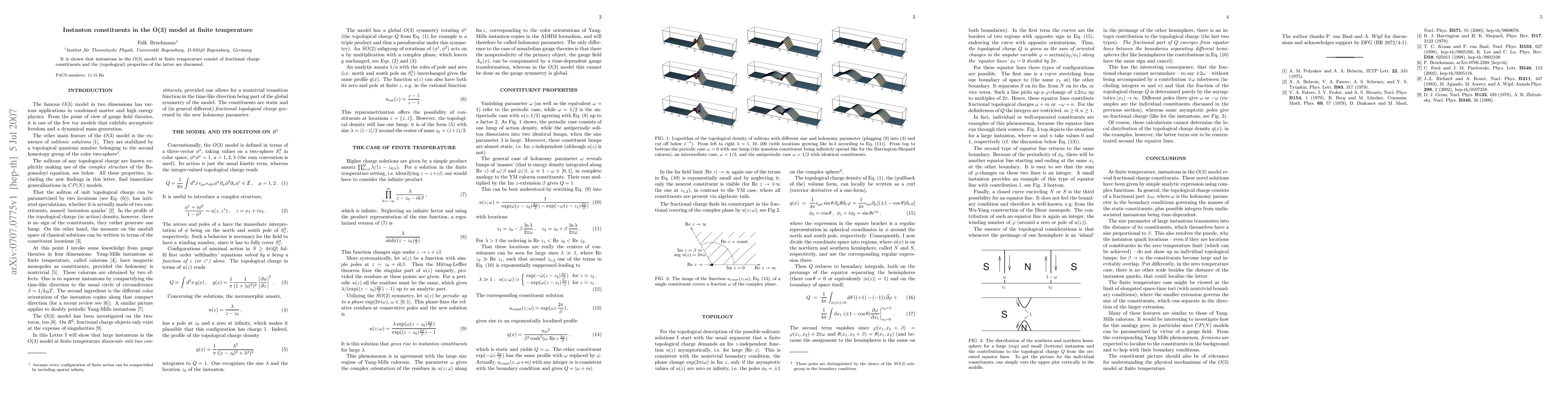Summary: This study reveals that instantons in the O(3) model at finite temperature are composed of fractional charge constituents, and explores the topological properties of these constituents.