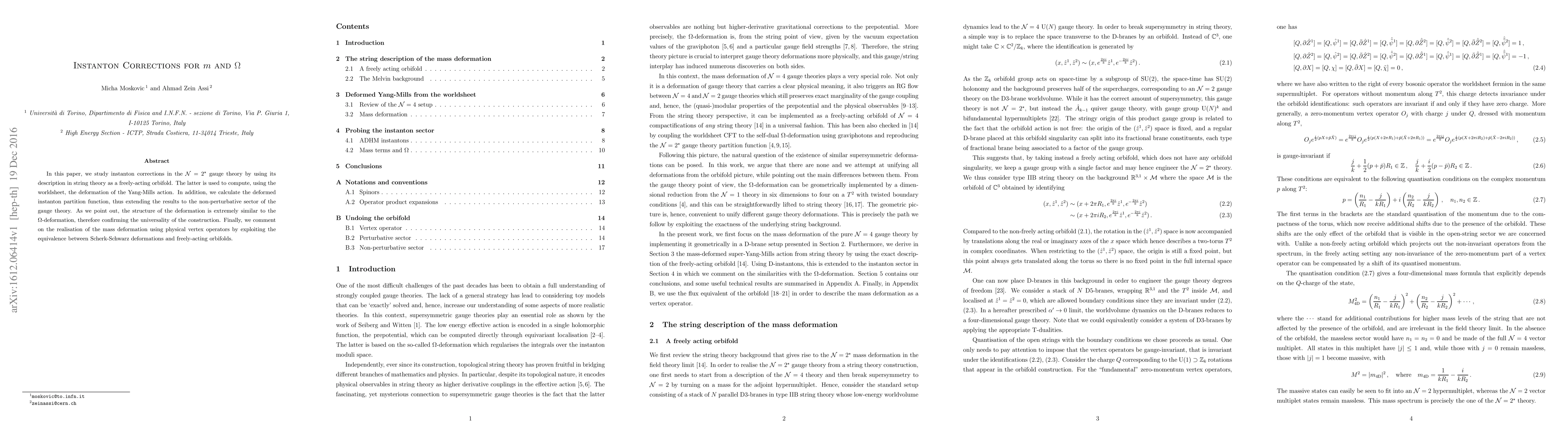 In this paper, we study instanton corrections in the N=2* gauge theory by using its description in string theory as a freely-acting orbifold. The latter is used to compute, using the worldsheet, the deformation of the Yang-Mills action. In addition, we calculate the deformed instanton partition function, thus extending the results to the non-perturbative sector of the gauge theory. As we point out, the structure of the deformation is extremely similar to the Omega-deformation, therefore confirming the universality of the construction. Finally, we comment on the realisation of the mass deformation using physical vertex operators by exploiting the equivalence between Scherk-Schwarz deformations and freely-acting orbifolds.