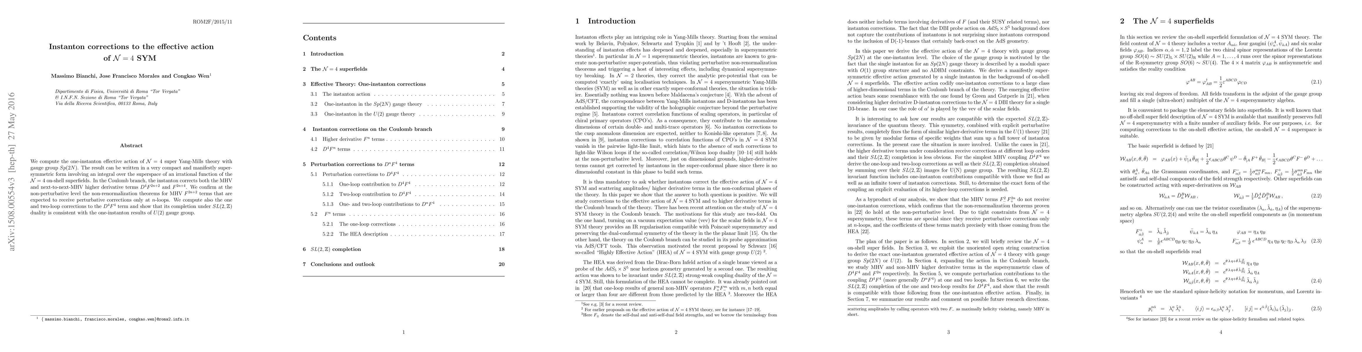 This paper computes the one-instanton effective action for N=4 super Yang-Mills theory, revealing corrections to MHV and next-to-next-MHV higher derivative terms in the Coulomb branch, and confirming non-perturbative non-renormalization theorems for MHV terms. It also calculates one and two-loop corrections to the D^4F^4 term and verifies SL(2,Z) duality consistency.