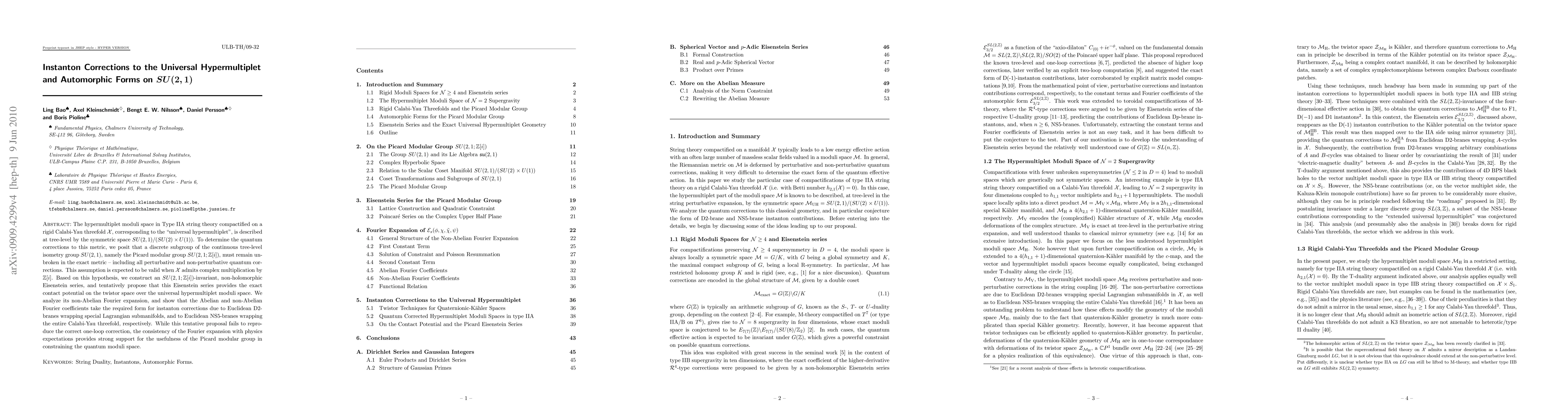 This paper investigates quantum corrections to the universal hypermultiplet moduli space in Type IIA string theory on a Calabi-Yau threefold, proposing that the Picard modular group SU(2,1;Z[i]) remains unbroken in the exact metric. It constructs an SU(2,1;Z[i])-invariant Eisenstein series and analyzes its Fourier expansion to argue that it provides the exact contact potential for the moduli space, supporting the role of the Picard modular group in constraining quantum moduli space.