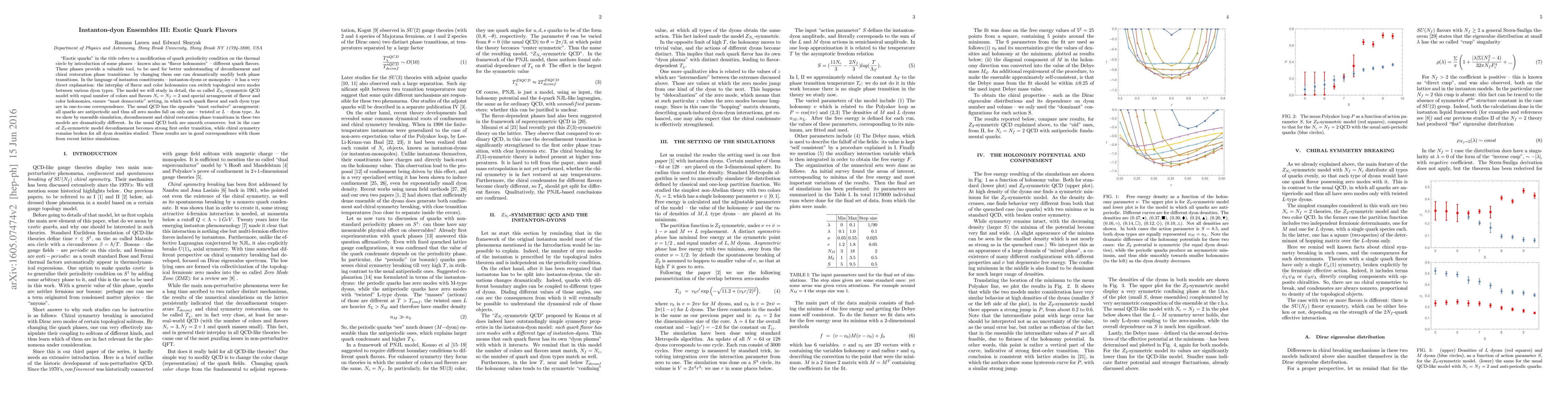 "Exotic quarks" in the title refers to a modification of quark periodicity condition on the thermal circle by introduction of some phases -- known also as "flavor holonomies" -- different quark flavors. These phases provide a valuable tool, to be used for better understanding of deconfinement and chiral restoration phase transitions: by changing them one can dramatically modify both phase transitions. In the language of instanton constituents -- instanton-dyons or monopoles -- it has a very direct explanation: the interplay of flavor and color holonomies can switch topological zero modes between various dyon types. The model we will study in detail, the so called $Z_{N_c}$-symmetric QCD model with equal number of colors and flavors $N_c=N_f=2$ and special arrangement of flavor and color holonomies, ensure "most democratic" setting, in which each quark flavor and each dyon type are in one-to-one correspondence. The usual QCD has the opposite "most exclusive" arrangement: all quarks are antiperiodic and thus all zero modes fall on only one -- twisted or $L$ -- dyon type. As we show by ensemble simulation, deconfinement and chiral restoration phase transitions in these two models are dramatically different. In the usual QCD both are smooth crossovers: but in the case of $Z_2$-symmetric model deconfinement becomes strong first order transition, while chiral symmetry remains broken for all dyon densities studied. These results are in good correspondence with those from recent lattice simulations.