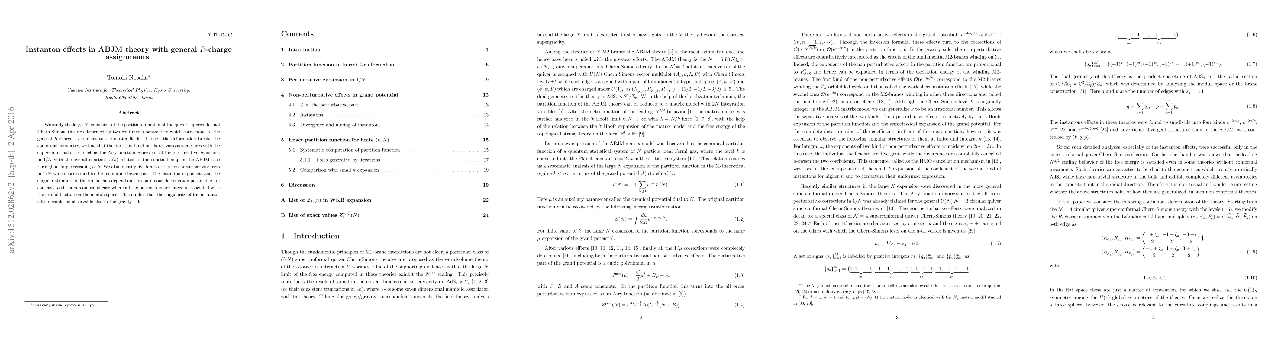 The paper investigates the large N expansion of the partition function in ABJM theory with general R-charge assignments, revealing structural similarities to superconformal cases despite symmetry breaking. It identifies non-perturbative instanton effects tied to membrane dynamics and shows that their singularity structure varies with continuous deformation parameters, suggesting observable effects in gravitational duals.