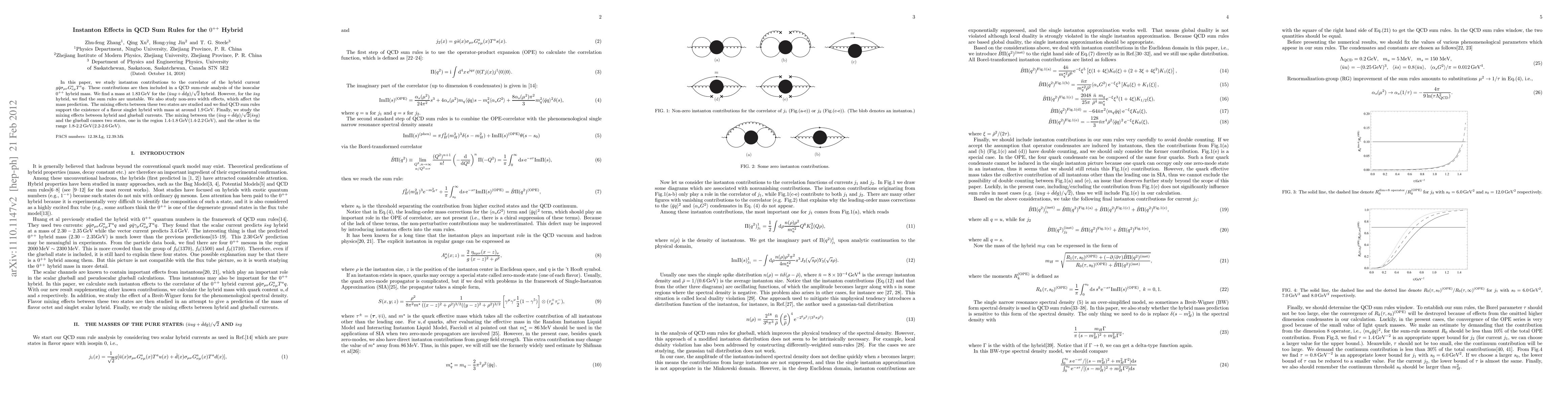 In this paper, we study instanton contributions to the correlator of the hybrid current $g\bar q \sigma_{\mu\nu}G^a_{\nu\mu}T^a q$. These contributions are then included in a QCD sum-rule analysis of the isoscalar $0^{++}$ hybrid mass. We find a mass at 1.83 GeV for the $(\bar uug+\bar ddg)/\sqrt{2}$ hybrid. However, for the $\bar ssg$ hybrid, we find the sum rules are unstable. We also study non-zero width effects, which affect the mass prediction. The mixing effects between these two states are studied and we find QCD sum rules support the existence of a flavor singlet hybrid with mass at around 1.9 GeV. Finally, we study the mixing effects between hybrid and glueball currents. The mixing between the $(\bar uug+\bar ddg)/\sqrt{2}$($\bar ssg$) and the glueball causes two states, one in the region 1.4-1.8 GeV(1.4-2.2 GeV), and the other in the range 1.8-2.2 GeV(2.2-2.6 GeV).